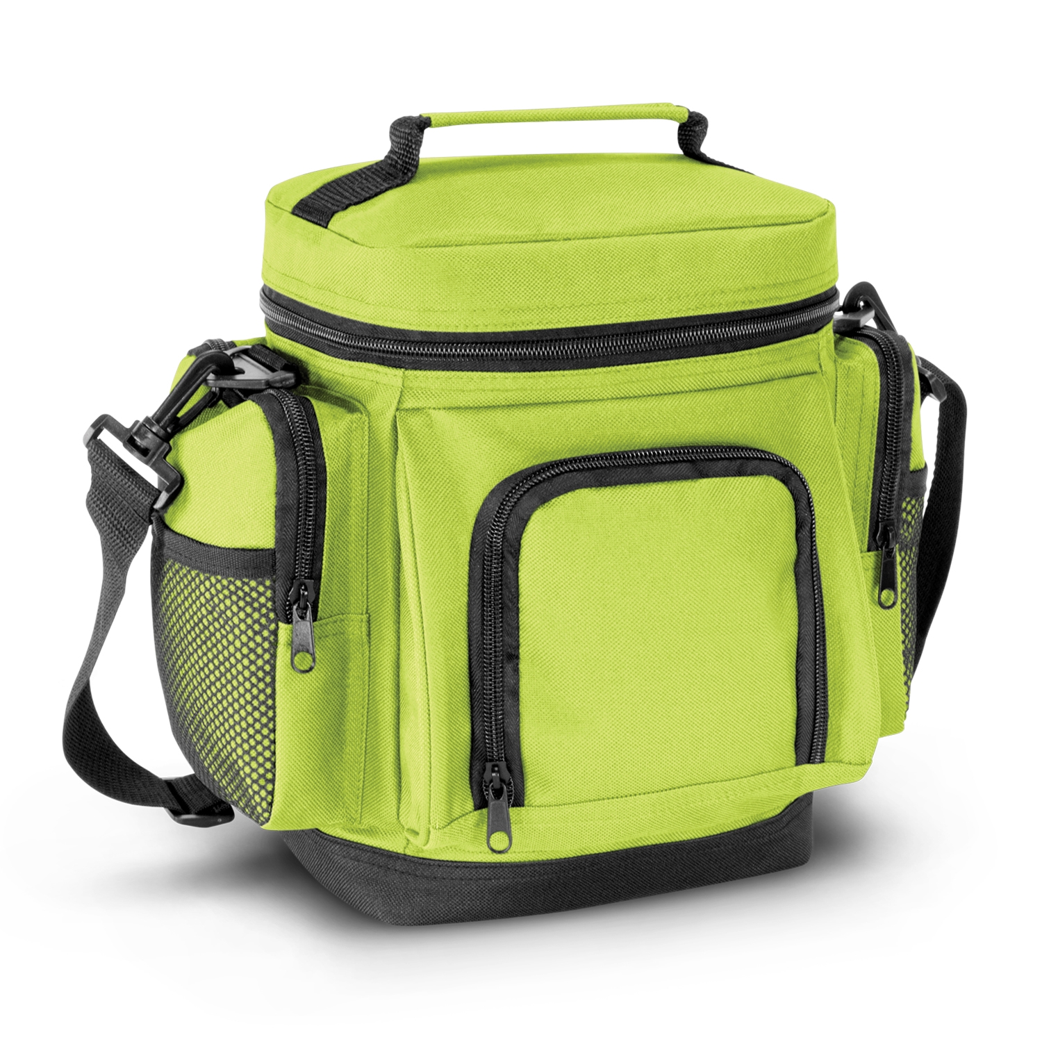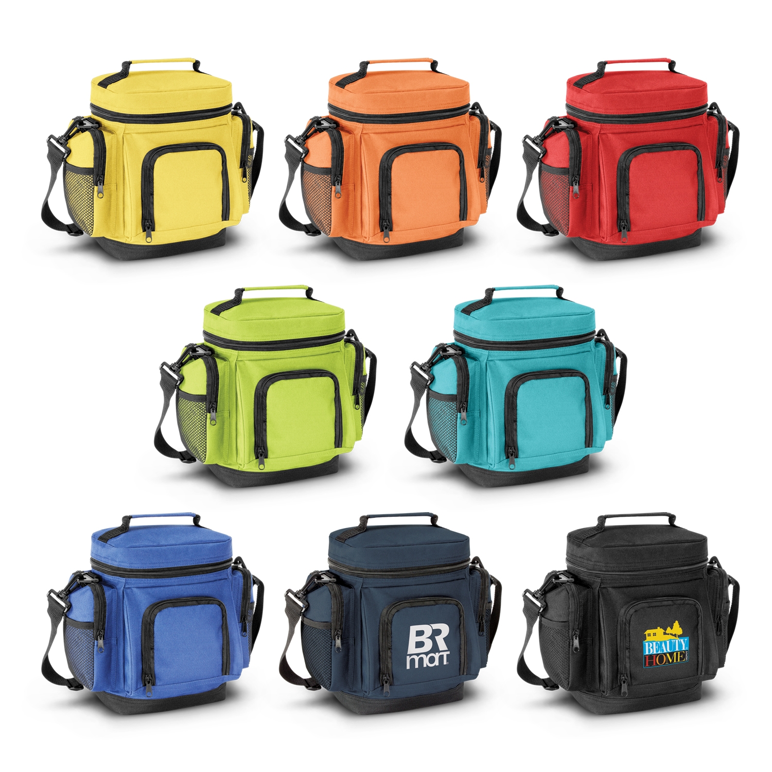 Smart 6.5 litre cooler bag manufactured from 600D polyester with an inner lining of aluminium foil laminated PE foam insulation. Other features include a carry handle, adjustable shoulder strap, three zipped external pockets and two mesh pockets. . Decoration options: Screen Print | Embroidery | Digital Transfer