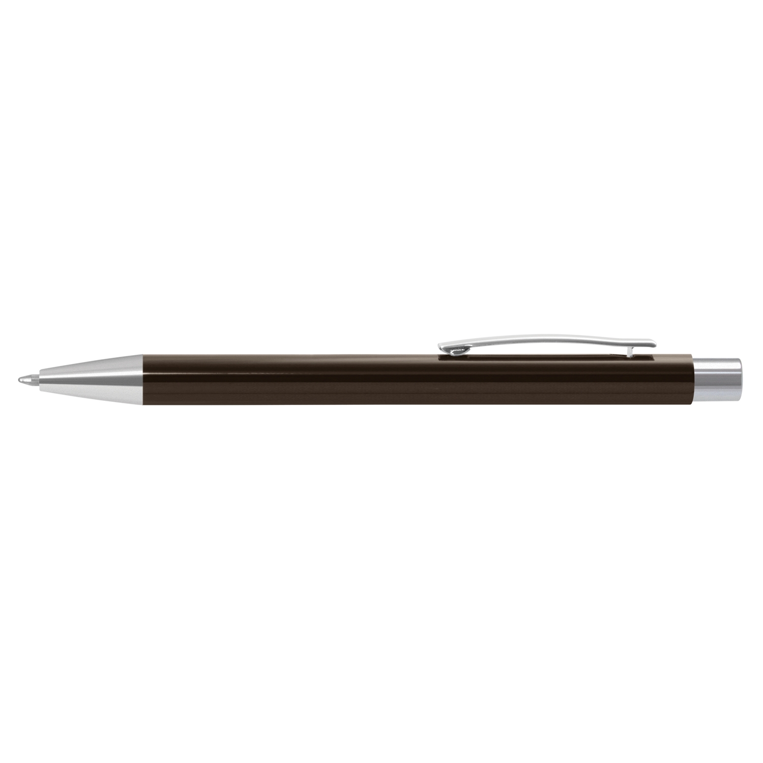 Retractable aluminium ball pen with shiny anodised coloured barrels and a matt anodised silver barrel, all of which have shiny chrome accents. It has a black large volume refill with 1200 metres of writing ink. Blue ink is available for an additional charge and it laser engraves to an oxidised white colour. Lancer can be presented in an optional black velvet sleeve or a gift box.