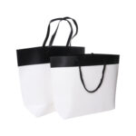 Large Black & White Boutique Kraft Paper Bag is ideal for showcasing your elegant branding logos. These personalised paper bags are available to order in a choice of colours, sizes and printing methods. They can be supplied unprinted or custom printed, available with screen print, full-colour print, add-on stickers, add-on stamps, or hot stamping. These paper bags does not only have an excellent capacity for carrying all your goods, but also for displaying your company logo and name. Give them away at any promotional location or take them with you anywhere you go to increase your brand exposure! Material - 250gsm paper