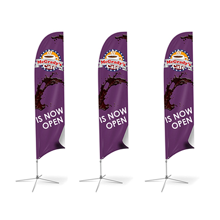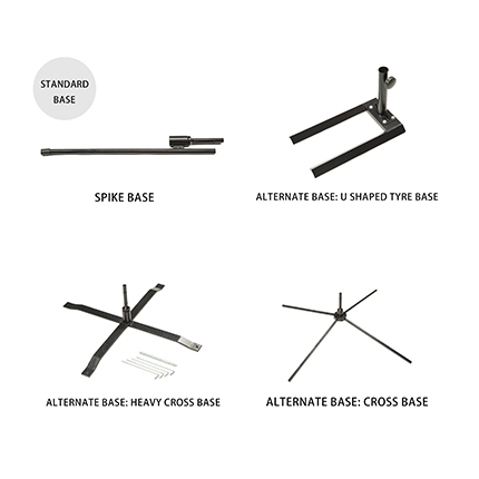 Let your branding fly high with our new range of advertising banners. Our banners are made from 110g knitted material, and are great for any occassion. They are available in 3 different sizes, and come in both one side or double sided print. Additionally with double sided print, you have the ability to print different logos on each side. A blockout liner is added between the two banners with this option. The standard set for the banners include: a flag, pole, spike base and carry bag. Our range of advertising banners are the best way to get your branding noticed. Spike base-Standard base,can only be used for outdoor activities. Cross base-Good for indoors. Heavy Cross base-Great for outdoors and indoors. U Shape Tyre base-Perfect for Car wheel Weight. Material - 110g Knitted Material Lead time is from confirmation of artwork approval. Lead time refers to dispatch, final delivery time will depend on location and type of courier used.