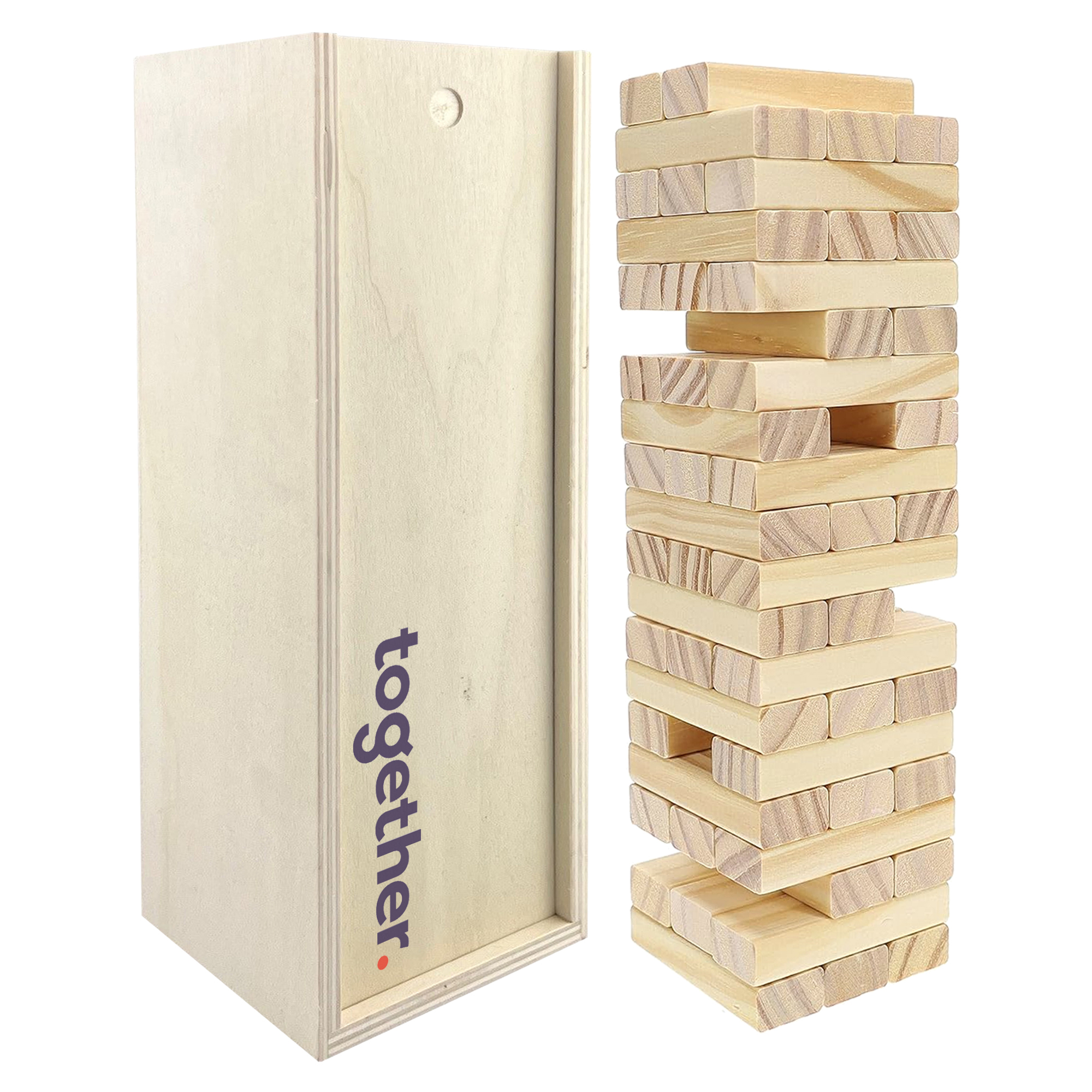 Large Janga Set is constructed by 54 wooden blocks and is a game of providing hours of fun for kids and adults alike. Whether you're hosting a family gathering or having a backyard BBQ with friends, everyone will enjoy playing this classic game together. The players take turns removing one block at a time without causing the tower to fall. Made from natural durable pine wood and packed in a wooden box which can also be branded. The blocks are sanded for a smooth finish.