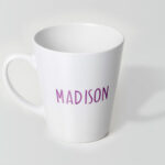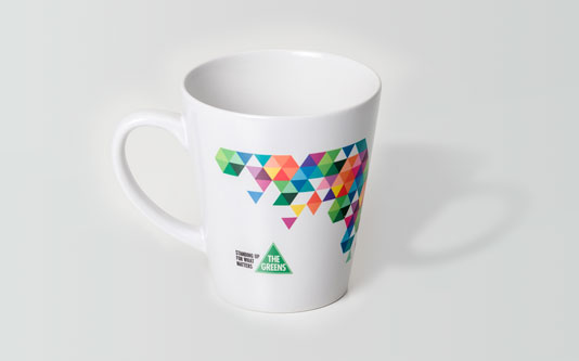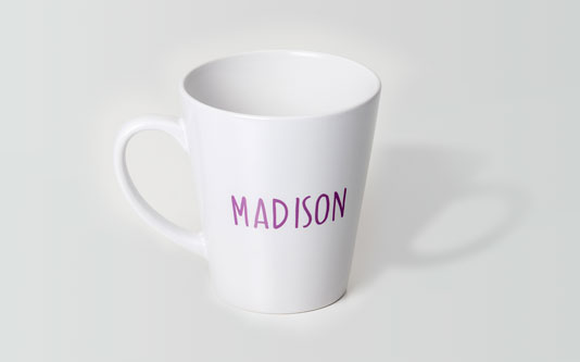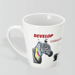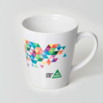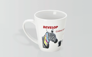 The stylish, conical-shaped Latte dye sub mug provides the perfect background for your colourful advertising. Volume: 350ml. Price is for mug and dye sublimation to 1 or 2 sides or a wrap. Only available in white.