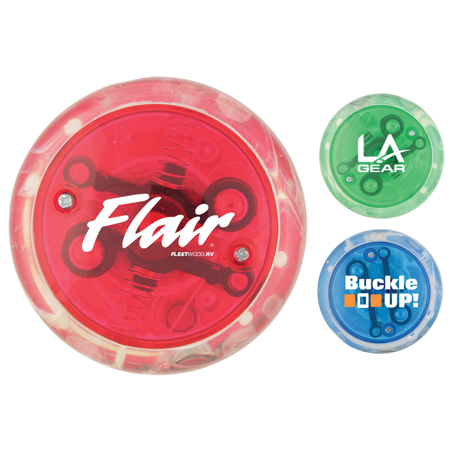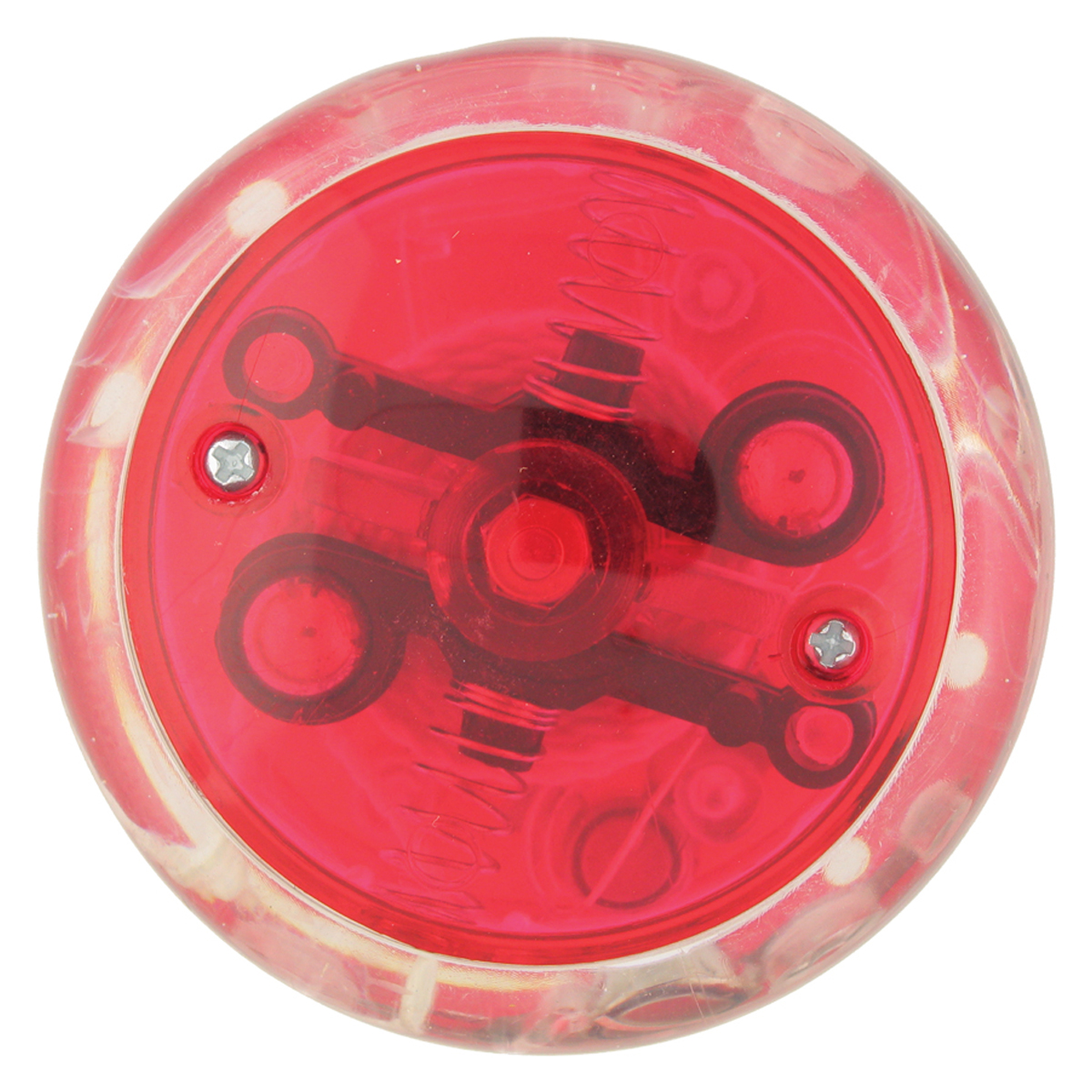 Light up colourful plastic yo-yos with a clutch and bearing so you can do all of your favourite tricks. The blinking red lights are activated and glow when the toy is spinning.