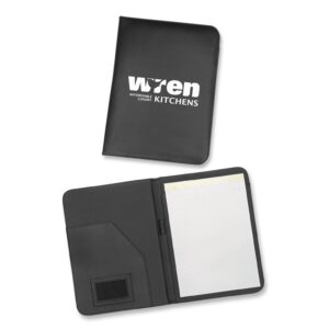 Large PU portfolio with a lined pad and a pen loop. It laser engraves to a matt black finish. Decoration options: Screen Print | Laser Engraving | Resin Coated Finish | Direct Digital