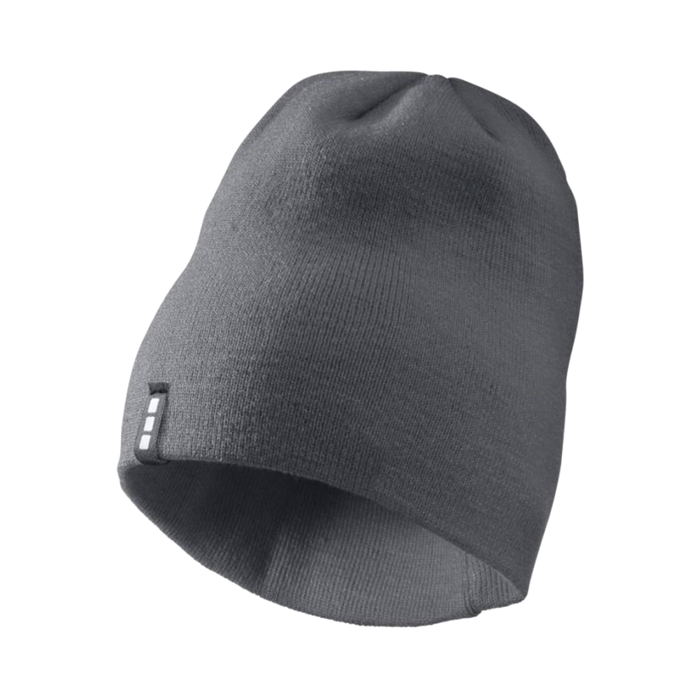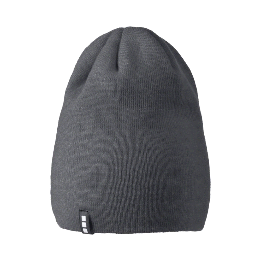 The Elevate knit beanie is made from 100% acrylic 1x1 rib knit fabric. Its double layer makes for a warm and comfortable fit. Classic styling. It is the perfect hat for any outdoor activity.