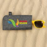 Lux sunglass pack with RPET felt sunglasses pouch with polycarbonate frame sunglasses with tinted lenses. Includes items: LL4559 Montana RPET Felt Sunglass Pouch. LL4560 Horizon Sunglasses.