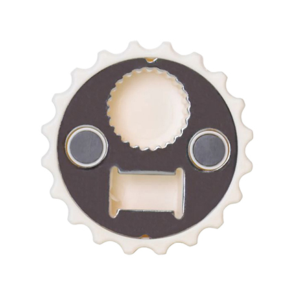 The Magnetic Dual Bottle Opener has 2 bottle openers in one cool product! Whether you are holding a beer bottle, or a water bottle, open it with ease! The magnetic chip allows it to be stuck on your fridge, for easy access! Made from ABS, and can be customized into any colour or finish.