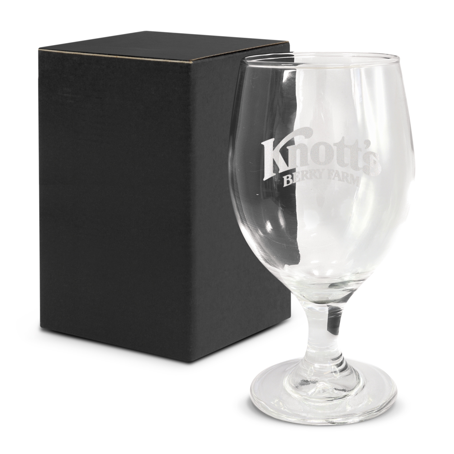 Premium 425ml stemmed beer glass which laser engraves to a natural etch and can be presented in an optional black gift box. This product is not dishwasher safe and handwashing is recommended.