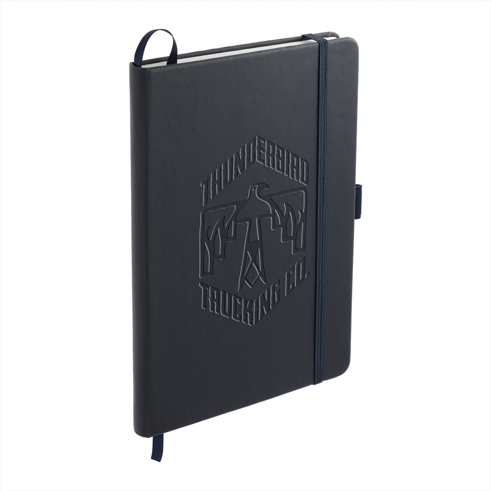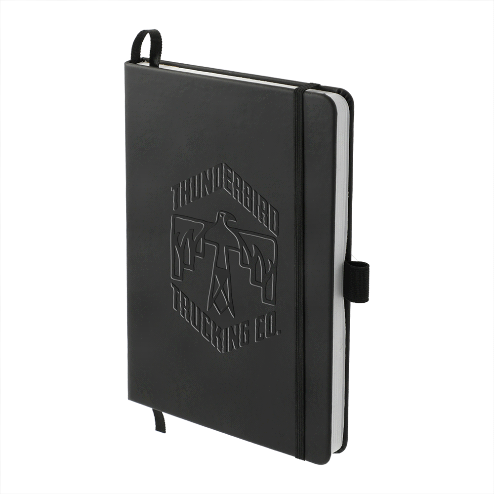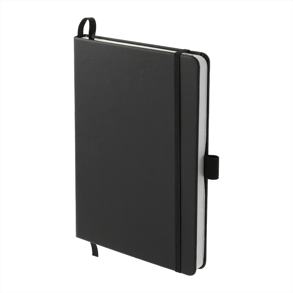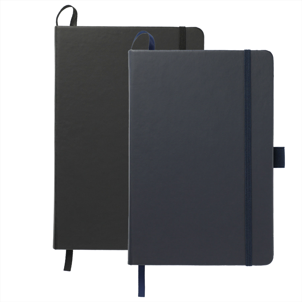The mela recycled JournalBook ® presents a uniquely crafted hardcover, color-matching elastic closure, pen loop, and ribbon page marker, with 39% of apple components. Features 80 sheets of white lined 100% recycled paper and fruit leather, with a back document pocket.