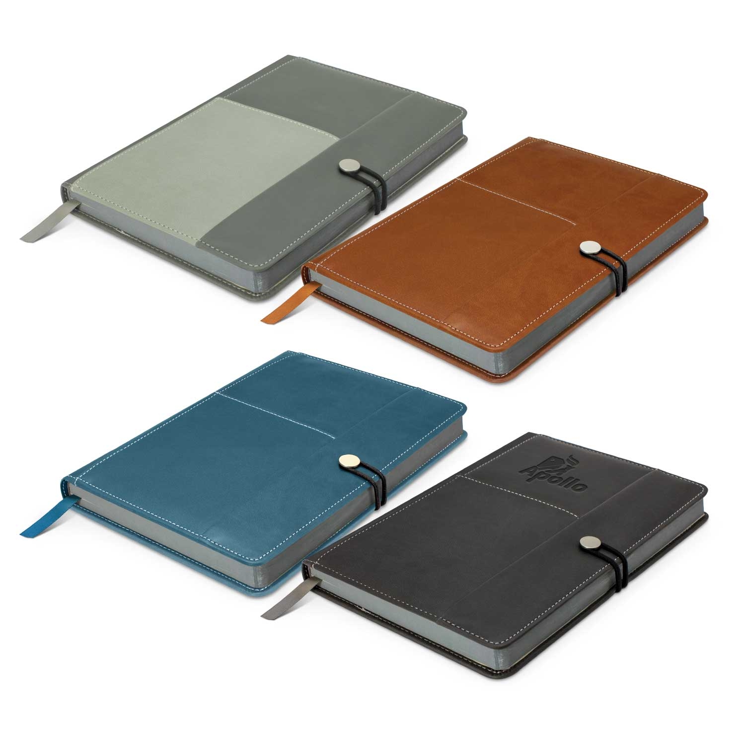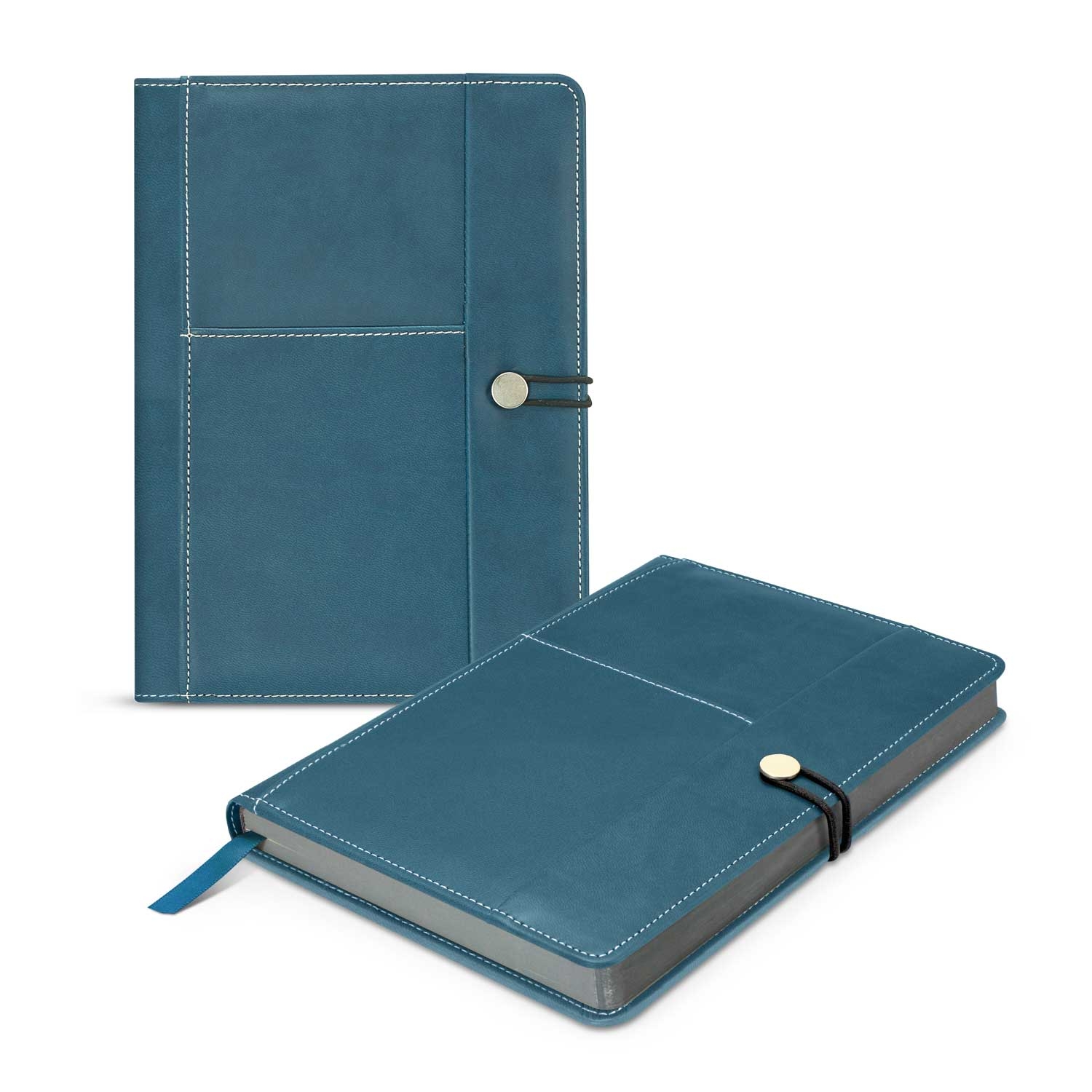 Luxurious medium size, hard cover notebook with a delightfully stitched soft PU finish. It has a massive 160 leaves (320 pages) of high quality lined cream paper and a convenient PU pocket on the front to securely hold a phone. Other features include a smart elastic closure and a book mark ribbon.