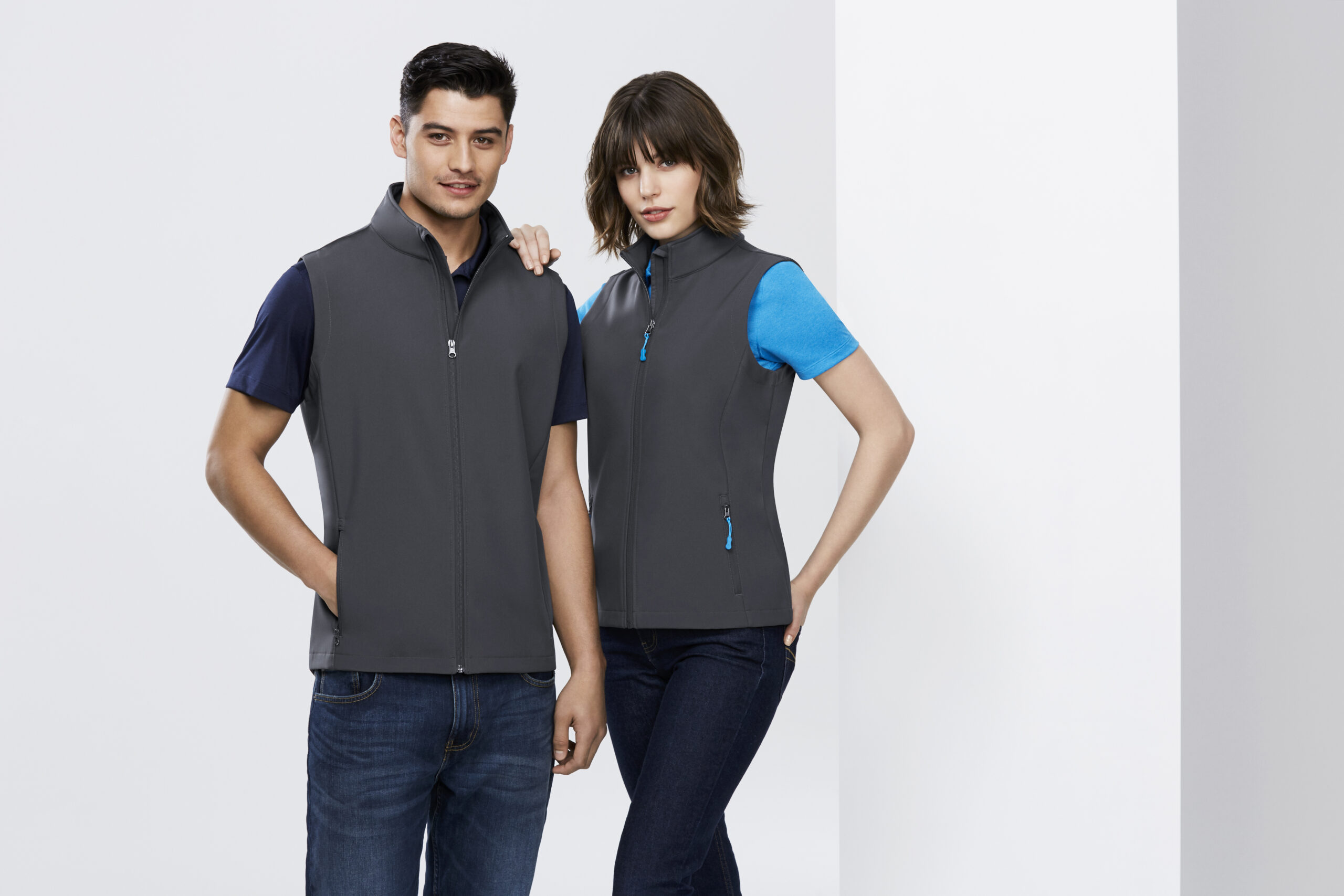 Outer: 100% Polyester Lining: Bonded Textured fleece lining. Features lightly water repellent and wind resistant. Stand up collar with soft chin guard. Zippers can be interchanged with J744 Zippies to accent your logo. Scalloped longer back tail for added warmth.
