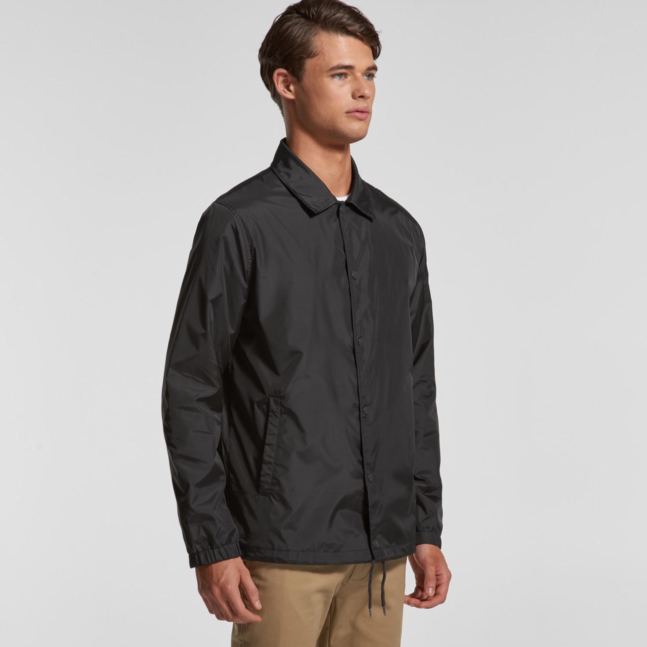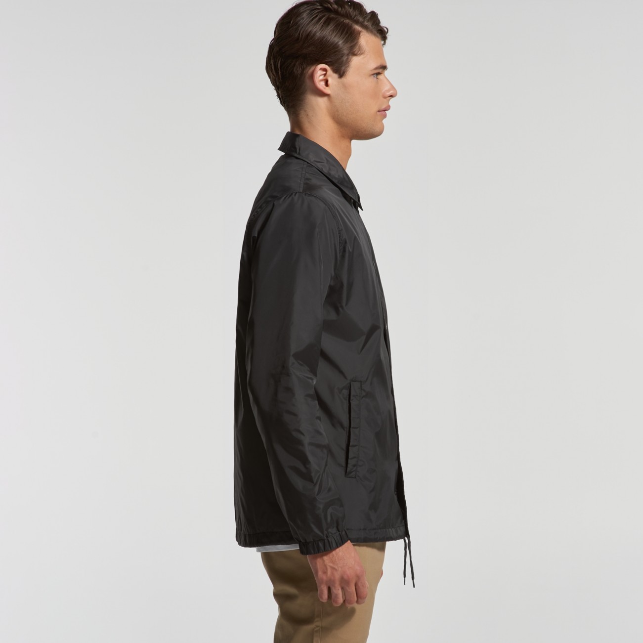 Regular fit Light weight, 80 GSM 100% nylon body & sleeve lining (polyester body lining). Collared jacket, two side pockets, snap dome to close, drawcord at hem, elastic cuffs