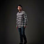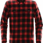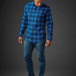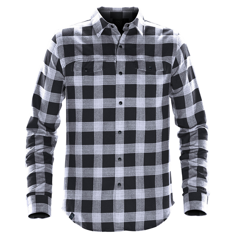 Classic plaid design highlights this lightweight, breathable cotton-blend mens long sleeve button-up shirt. Featuring snap cuffs, chest pockets, and full front button snaps for added styling. Full Front Snap Closures Cuff Placket with Snap Flapped Chest Pockets with Snap Closures Set-in Sleeves 60% Cotton, 40% Polyester, 4.57oz. (USA) / 155g (CDN)