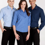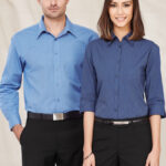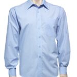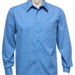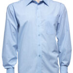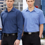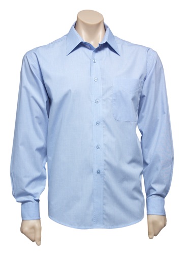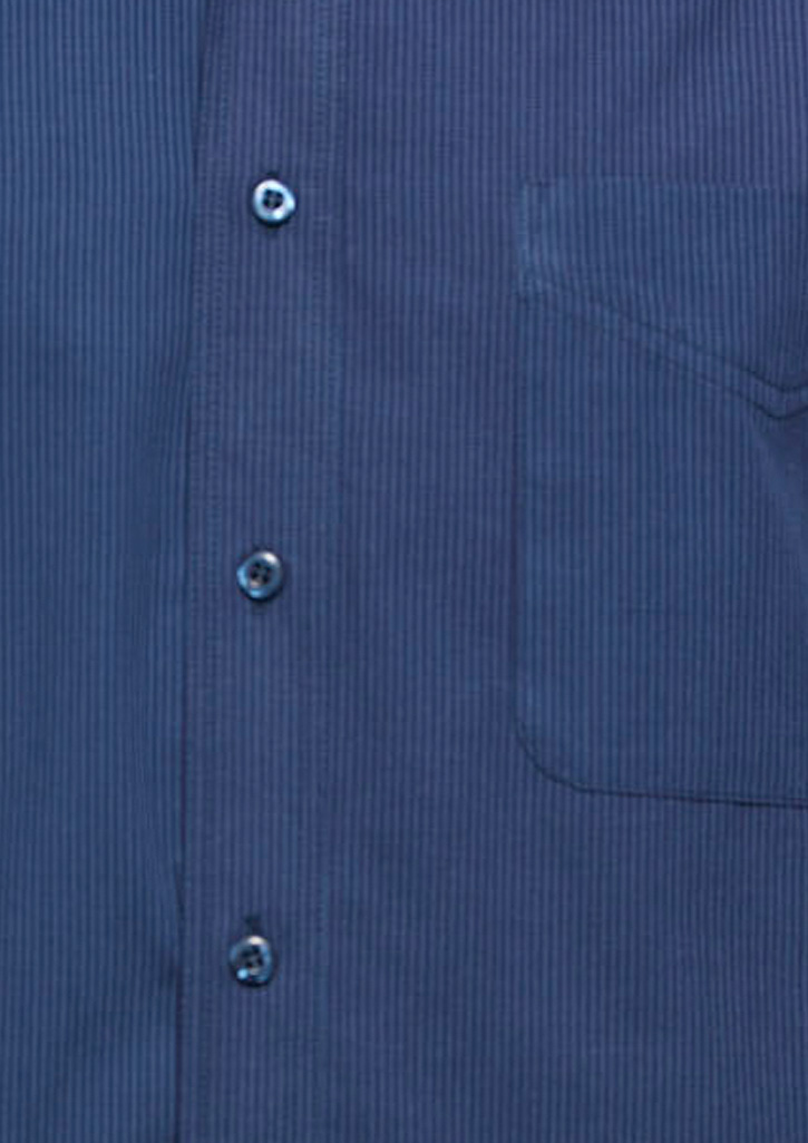 50% Cotton, 50% Polyester, easy iron - yarn dyed fabric, standard collar with left chest pocket, traditional business shirt fit with 2 back shoulder pleats.