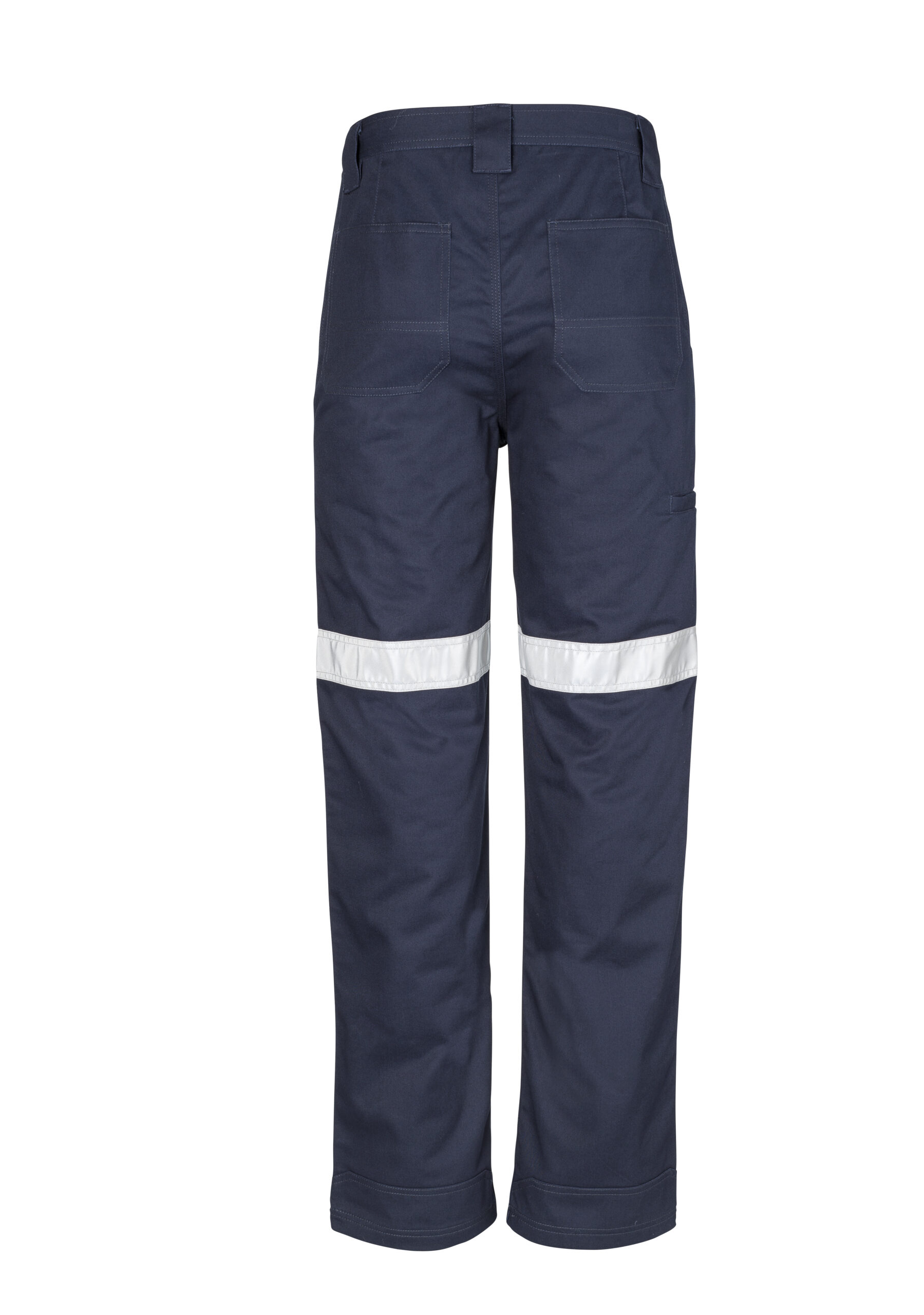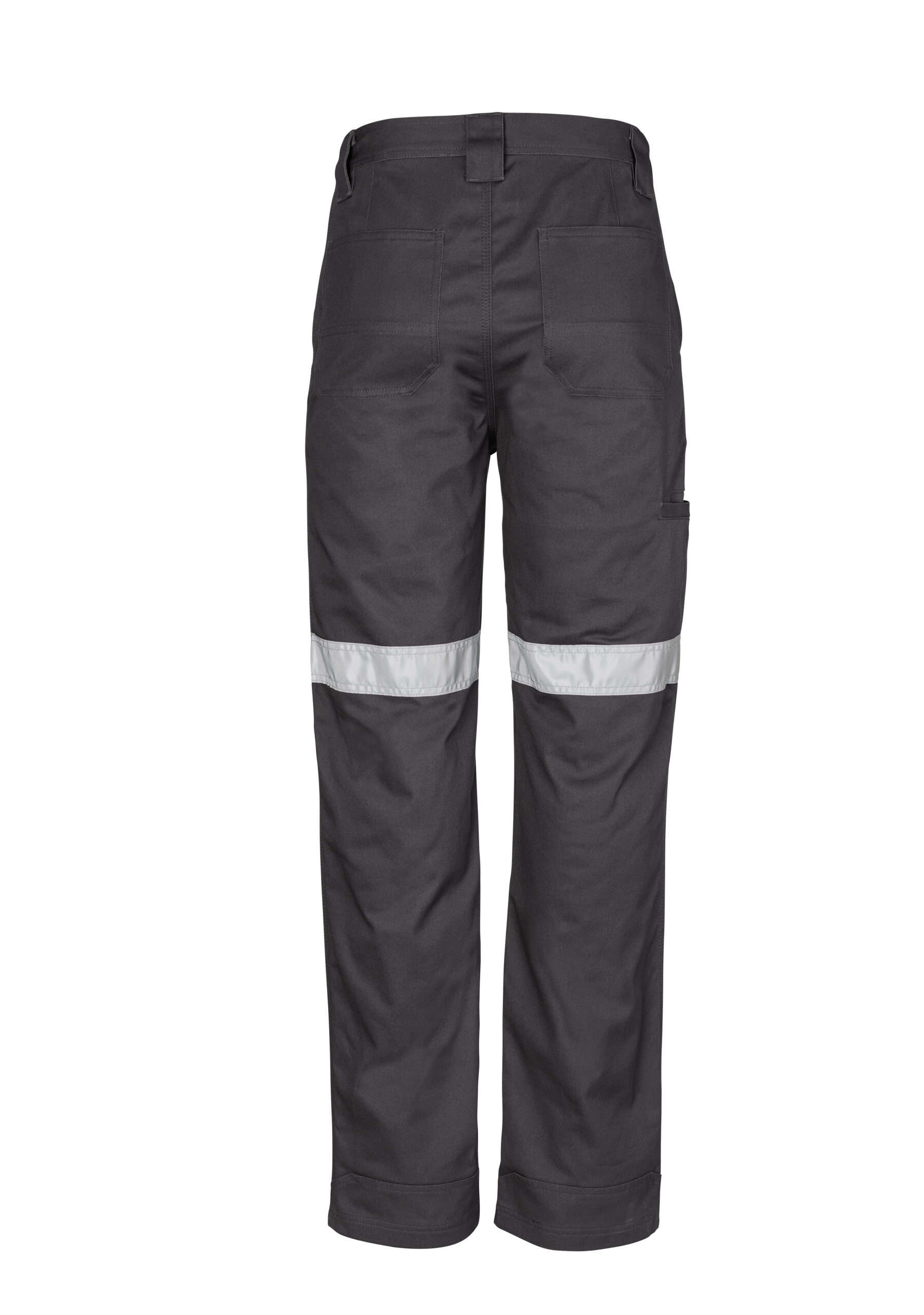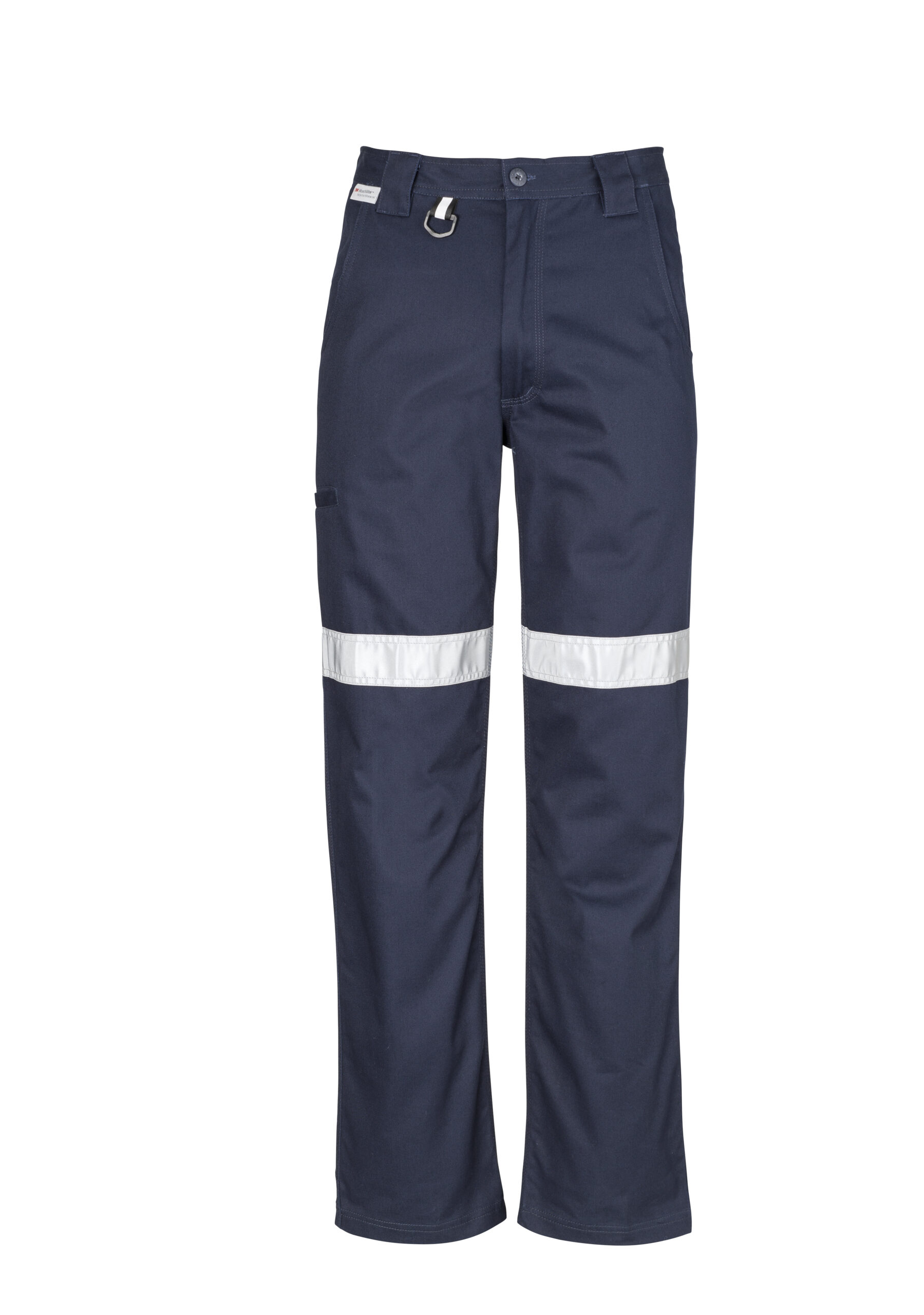100% Cotton Twill - 280 gsm. Mid weight pre-shrunk cotton drill to keep you cool while still being tough enough for any job, reflective tape, reinforced double layer heel and pocket patches, wide belt loops, triple stitched seams for extra durability, discrete side welt pocket.