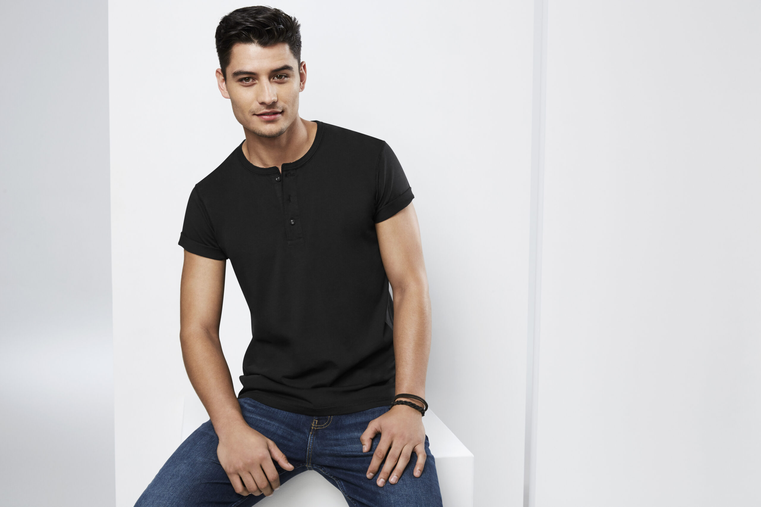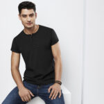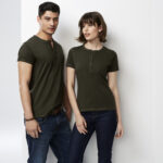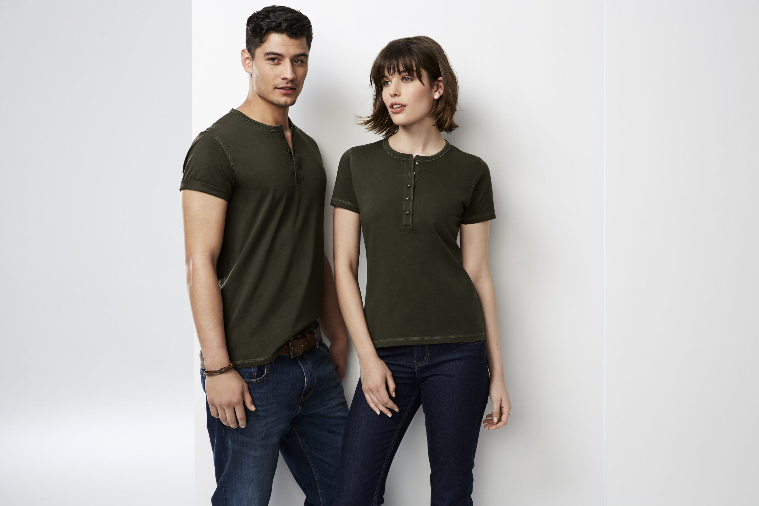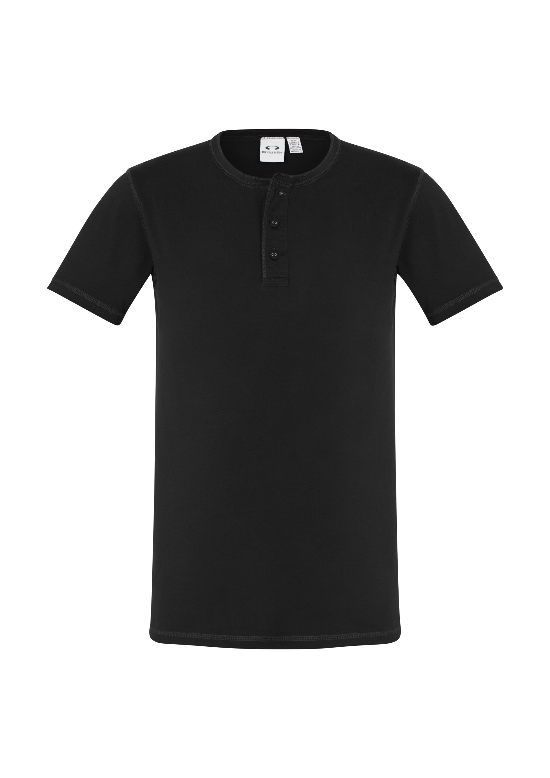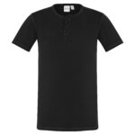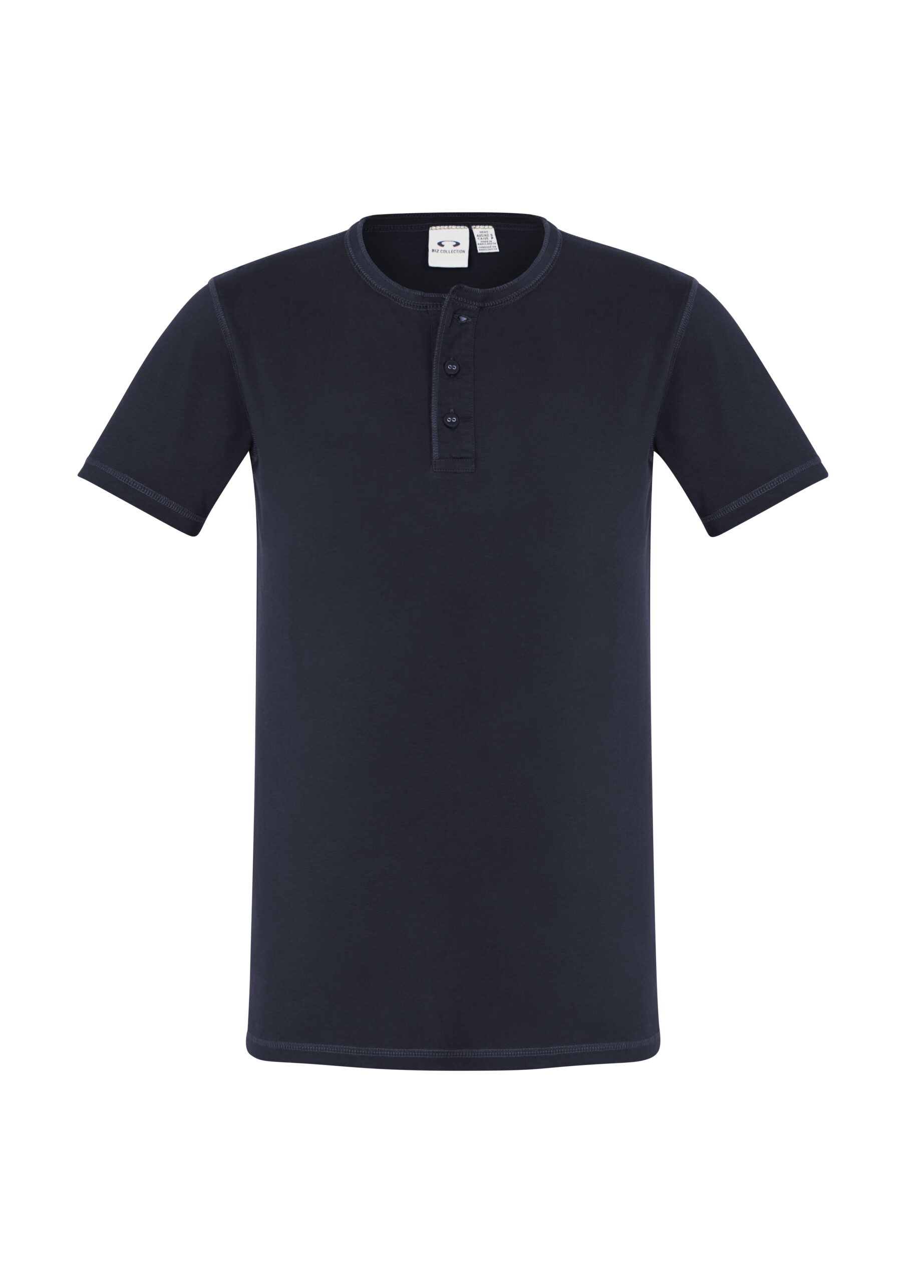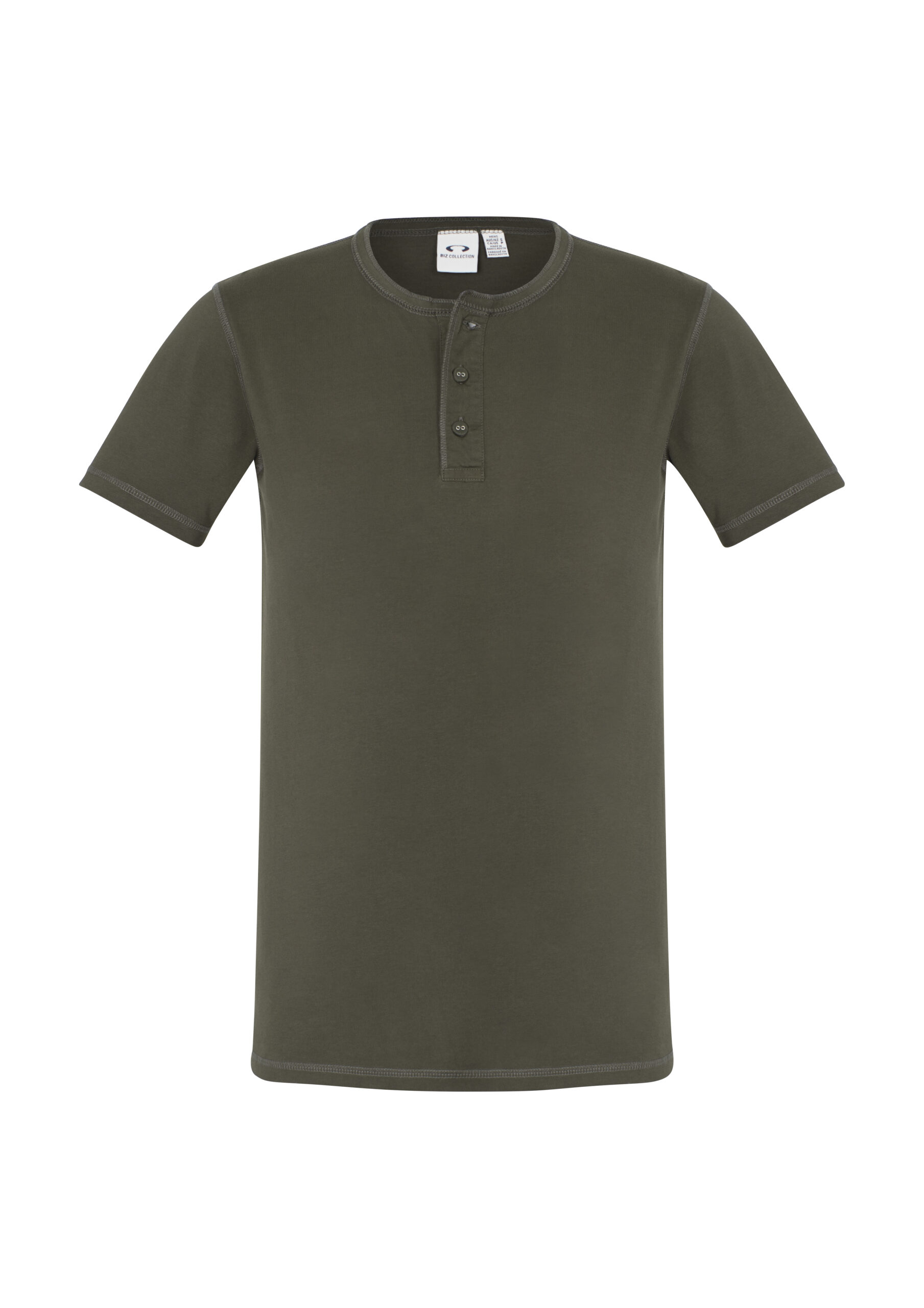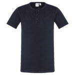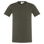 100% Cotton Single Jersey fabric 180 GSM UPF rating - Excellent. Features stone washed for an authentic vintage look. Crew neck with flat-locked stitching detail Henley style placket with fabric covered fish-eye buttons. Designed to softly fade over time.