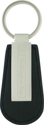 Metal And Leather Look Key Ring – Oval Shape With Rectangle Metal Section