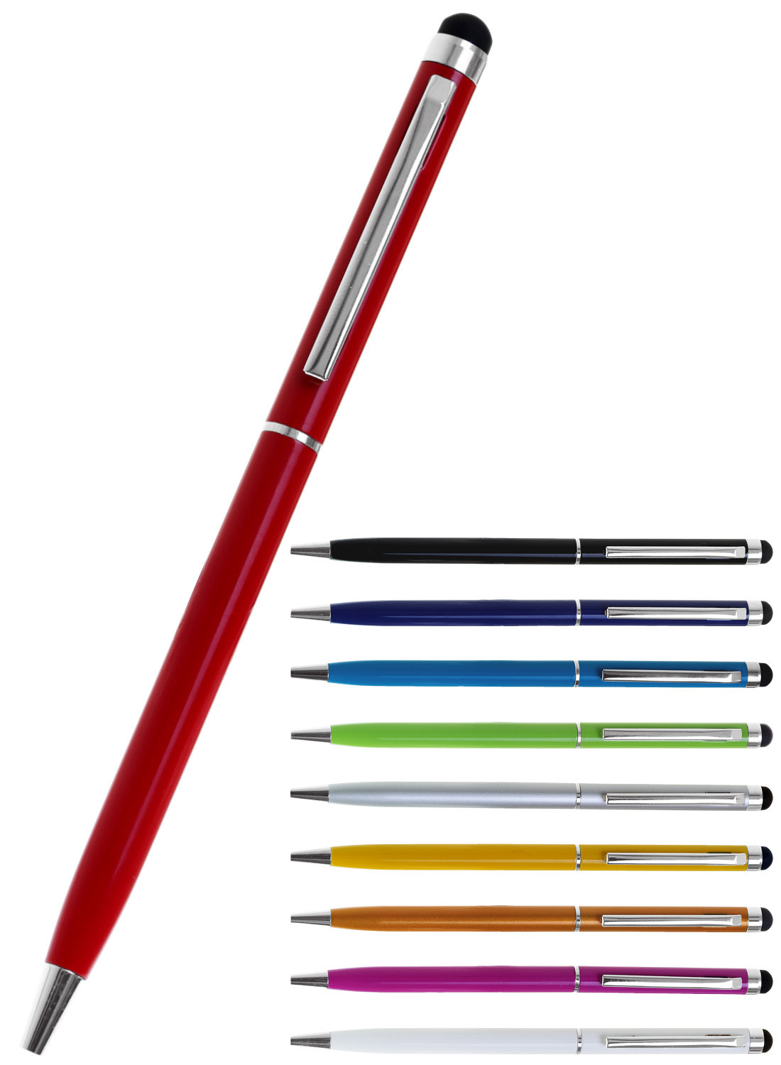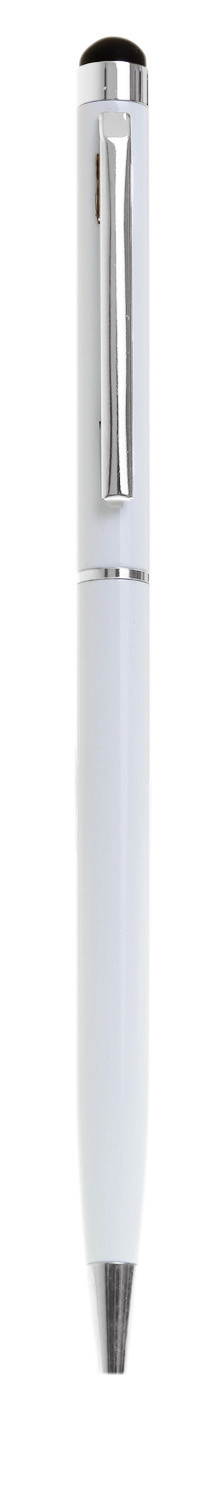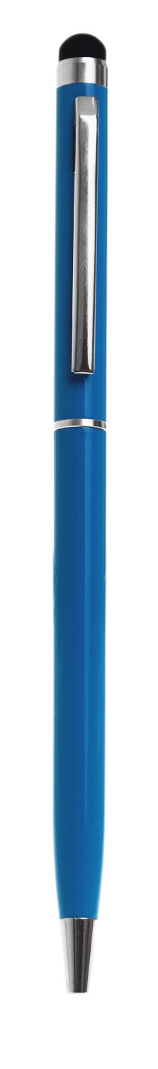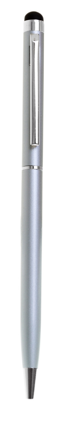 Slimline metal twist action pen with stylus for use on tablets and smart phones. Available in 10 brilliant colours with silver clip and trim. Black ink.