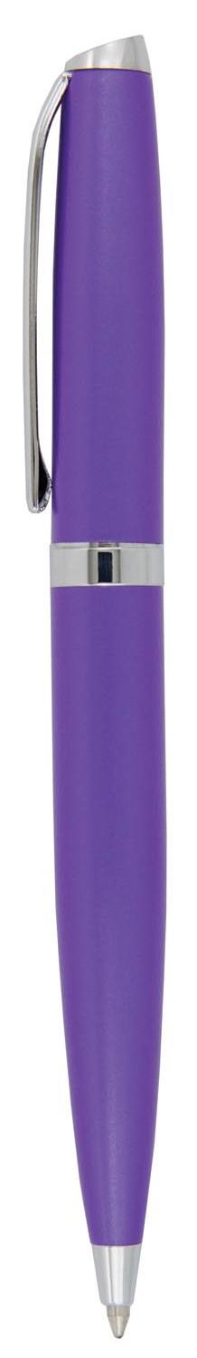 Stylish twist action metal ball pen in vibrant contemporary colours with shiny silver clip and trim. Parker style black refill.