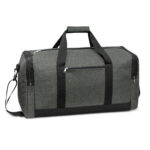 Carry on size duffle bag which is manufactured from poly-canvas that has been woven with different coloured fibres to create a very fashionable heather style two tone fabric. It has woven carry handles with a Velcro cuff and an adjustable woven shoulder strap which is removable. Other features include two zippered end pockets, a zippered side pocket and a tough 600D polyester base.