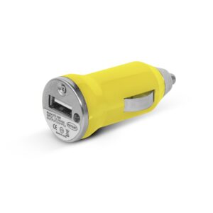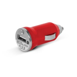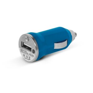 Compact 1 Amp car charger with an LED that lights up when in use. Decoration options: Pad Print