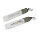 5ml pump action hand sanitiser which is easily attached to a key ring so it is always at hand when needed. Kills 99% of bacteria and germs instantly and has full ingredient specifications on the tube with plenty of room for branding. . Decoration options: Pad Print | Screen Print | Direct Digital