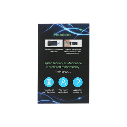 Whenever you are using devices with a built in camera, there is a risk that someone is secretly spying on you. Do not take this risk! To install a webcam cover now. Simple use your webcam cover with just a few steps. Just remove double sided tape tabs, position over the webcam then press firmly for a few seconds. Once installed, simply slide to the left to close or slide to the right to open. Custom card is also available. Material - ABS