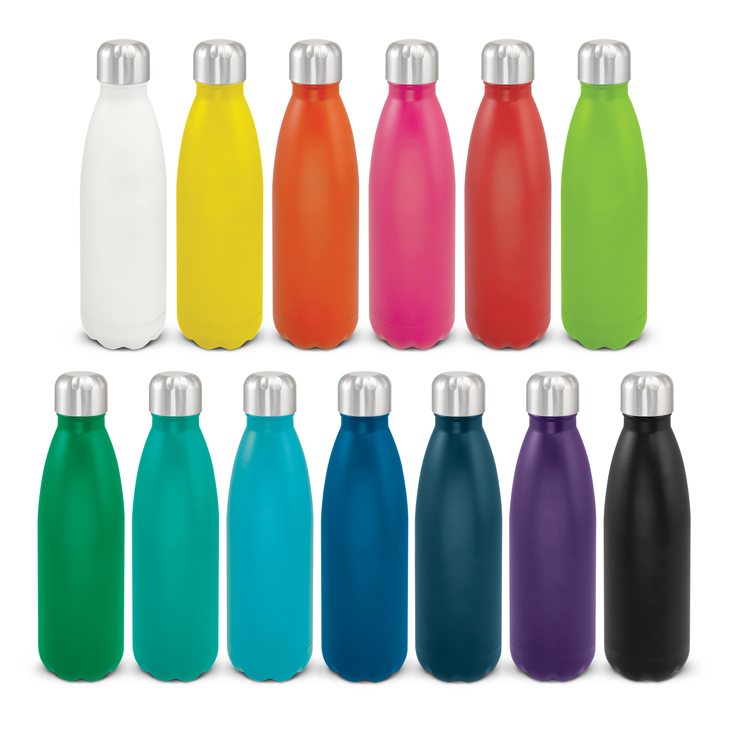 Trendy 500ml double wall, vacuum insulated stainless steel drink bottle with a stunning powder coated finish. It will keep drinks cold for 24 hours or hot for up to 12 hours. Mirage has a powder coated screw on lid as well as a classic stainless steel option. The bottle and lid can be mixed and matched in any colour combination from the standard colours. Up to five different colour combinations are included in the price and more are available for an additional charge. Mirage is BPA-free and laser engraves to a shiny steel finish. It is presented in a black gift box and an optional gift tube is available on request. This product is not dishwasher safe and handwashing is recommended.