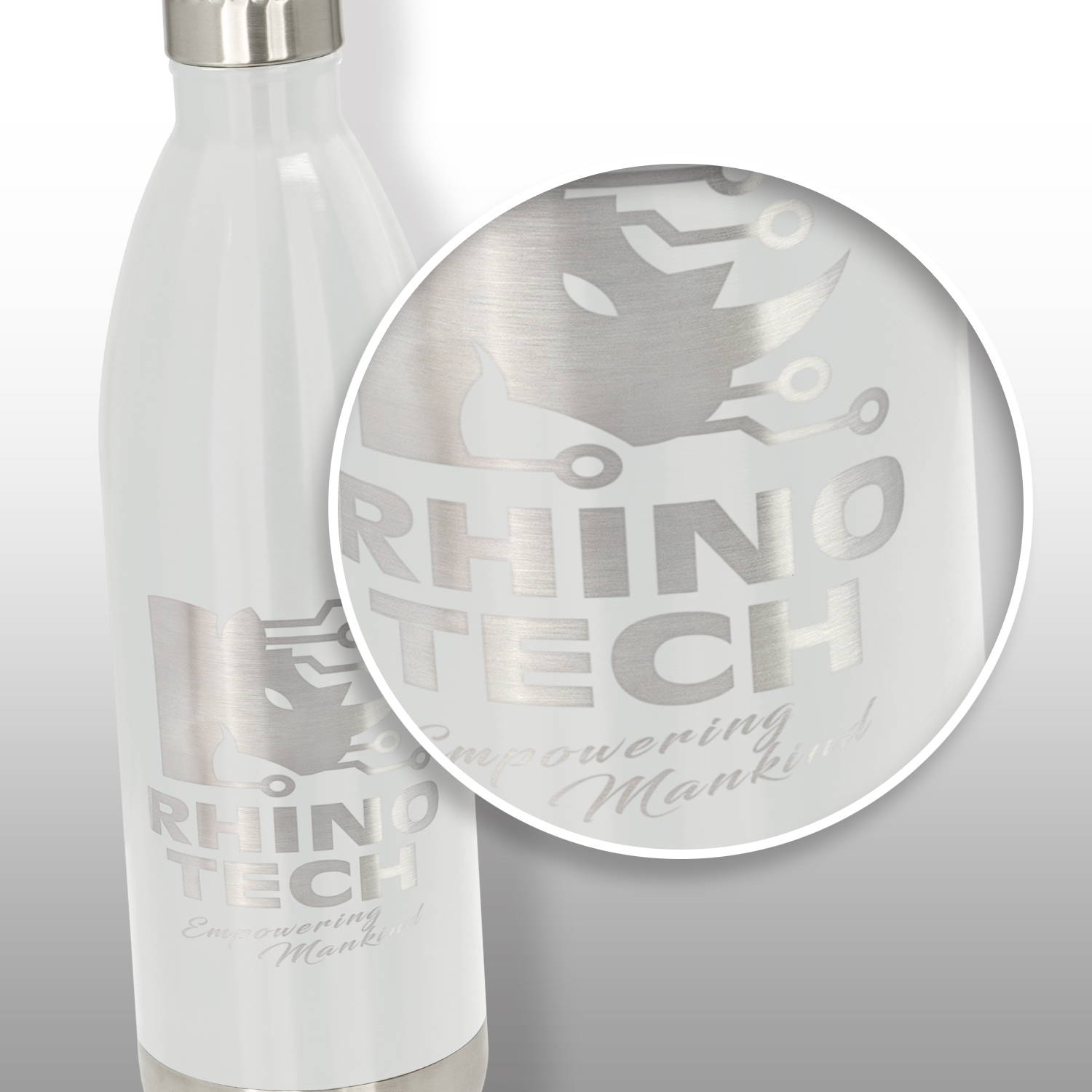 Extra large one litre double wall vacuum insulated stainless steel drink bottle with a secure stainless steel lid. It offers exceptional performance and will keep drinks cold for 24 hours or hot for up to 12 hours. Mirage laser engraves to a stainless steel finish and is nicely presented in a black gift box. Handwashing is recommended. Eco SafeStainless steel does not require a plastic liner ensuring a chemical and odour free beverage. It has an indefinite life span which keeps brands in the public arena for longer and also helps to limit the use of disposable plastic bottles that can end up polluting the environment. All materials used are recyclable and BPA free.