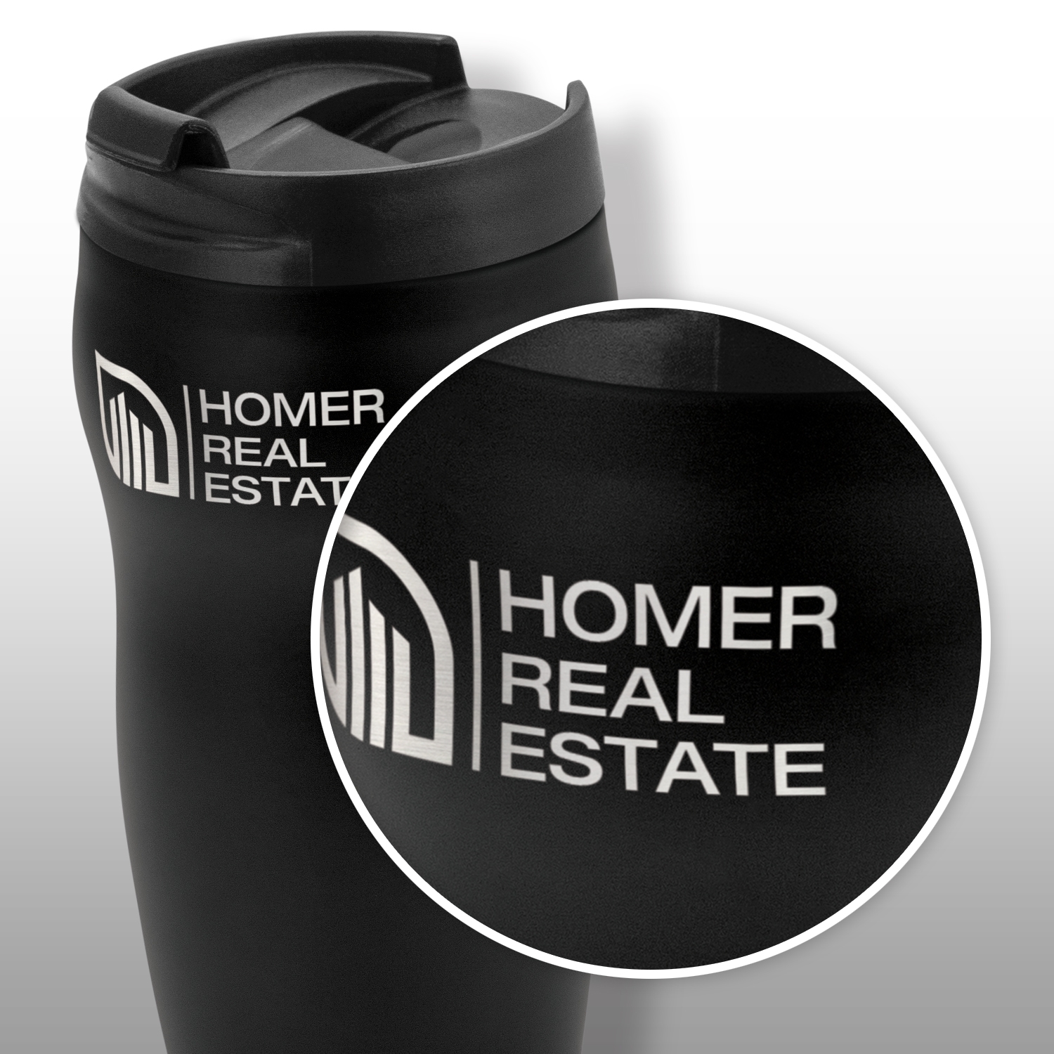 Premium 300ml double wall, vacuum insulated stainless steel coffee cup which will keep drinks hot for up to three hours. It has a stunning contoured design that makes it incredibly comfortable and easy to hold. Mocka has a secure screw on lid with a splash proof flip closure and a soft non-marking base. The cup laser engraves to a stainless steel finish and is BPA free. It is presented in a black gift box and handwashing is recommended.