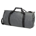Carry on size duffle bag which is manufactured from polyester with an on-trend heather style finish. It has woven carry handles with a Velcro cuff and an adjustable woven shoulder strap which is removable. Other features include a front pocket, and two zippered side pockets.