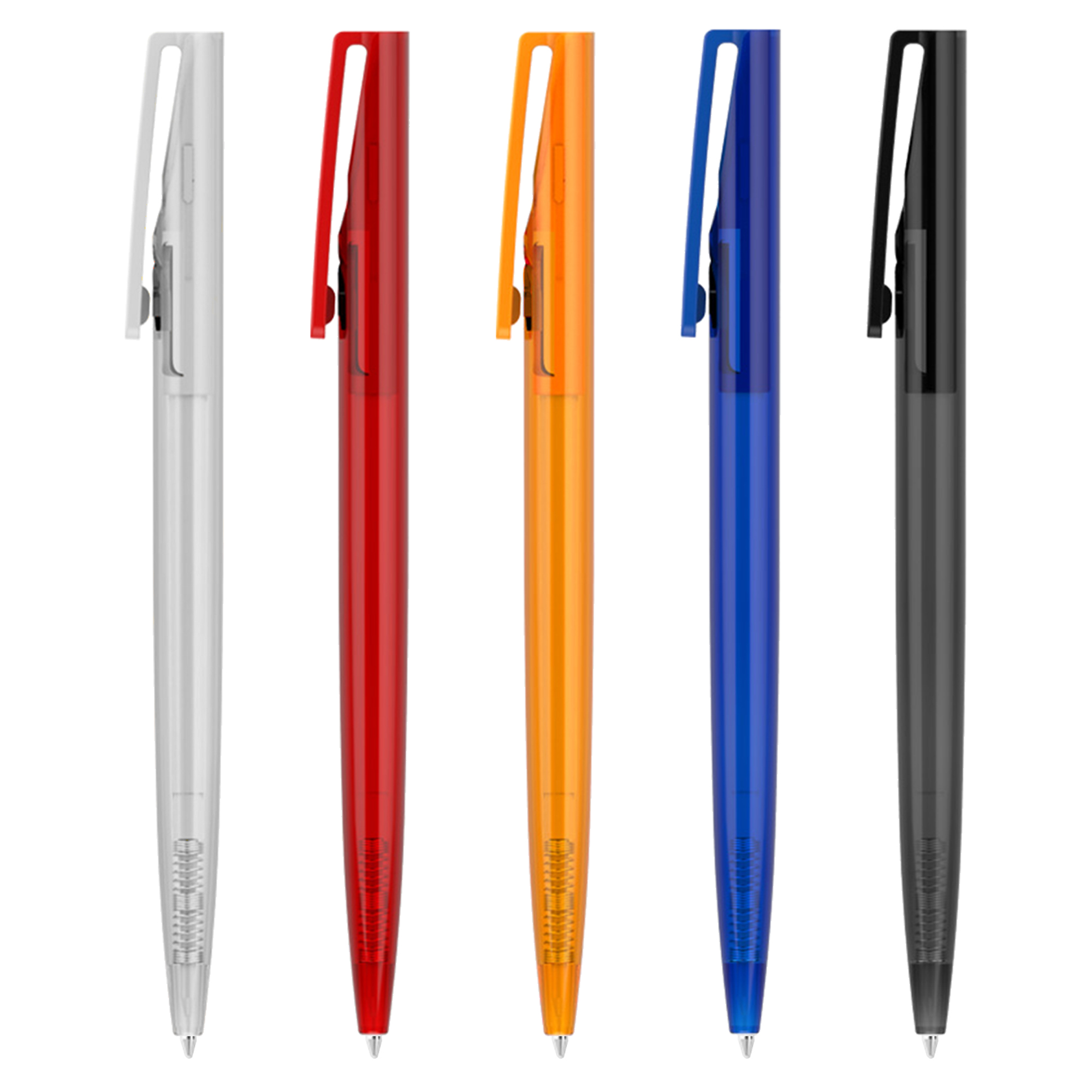 Twist action plastic transparent pen. It has high quality Parker-Type German manufactured black ink refill, 1800 meters writing distance, tungsten carbide ball provides you with quality writing. Comes standard with black ink, but blue ink is available on request at additional costs.