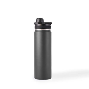 650ml powder-coated stainless steel drink bottle with convenient screw-in lid and carry handle. Secure lid is attached to bottle and when open can't be lost. Shatter, odour and stain resistant. This drink bottle is intended for hot & cold use, not suitable for carbonated liquids or freezing. For logo longevity hand washing is recommended. Eco Credentials -Reusable. -Sustainable. -Printed using renewable energy.