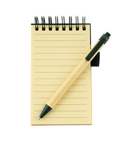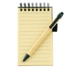 A6 ECO recycled spiral notebook and matching pen.