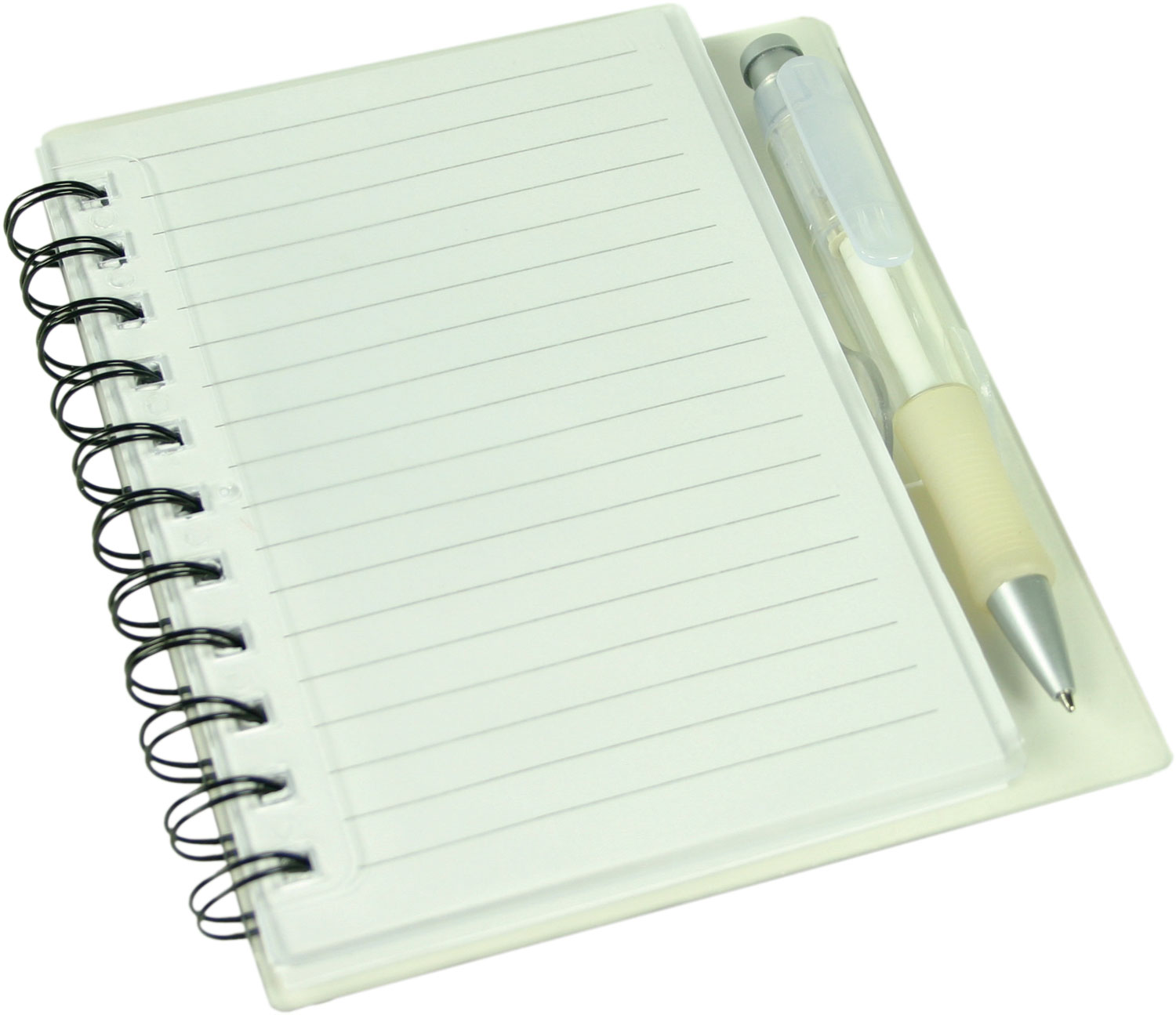 Quality ring bound pad translucent plastic cover with matching coloured pen