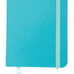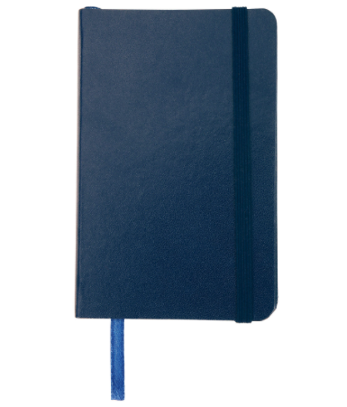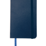 A5 Leather look cover notebook with expandable pocket on back page and elastic band closure