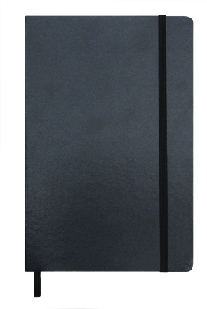 A4 Leather look notebooks with expandable pocket on back page and elastic band closure