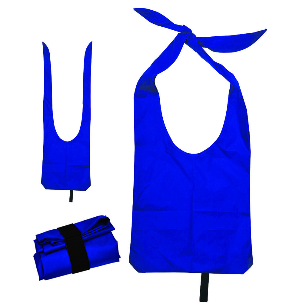 Made of 190T nylon. Long open handles with base gusset. Adjustable length handles by making a tie. Elastic band holds the folded bag into small size. Handles approx. 84 cm L x 8 cm W