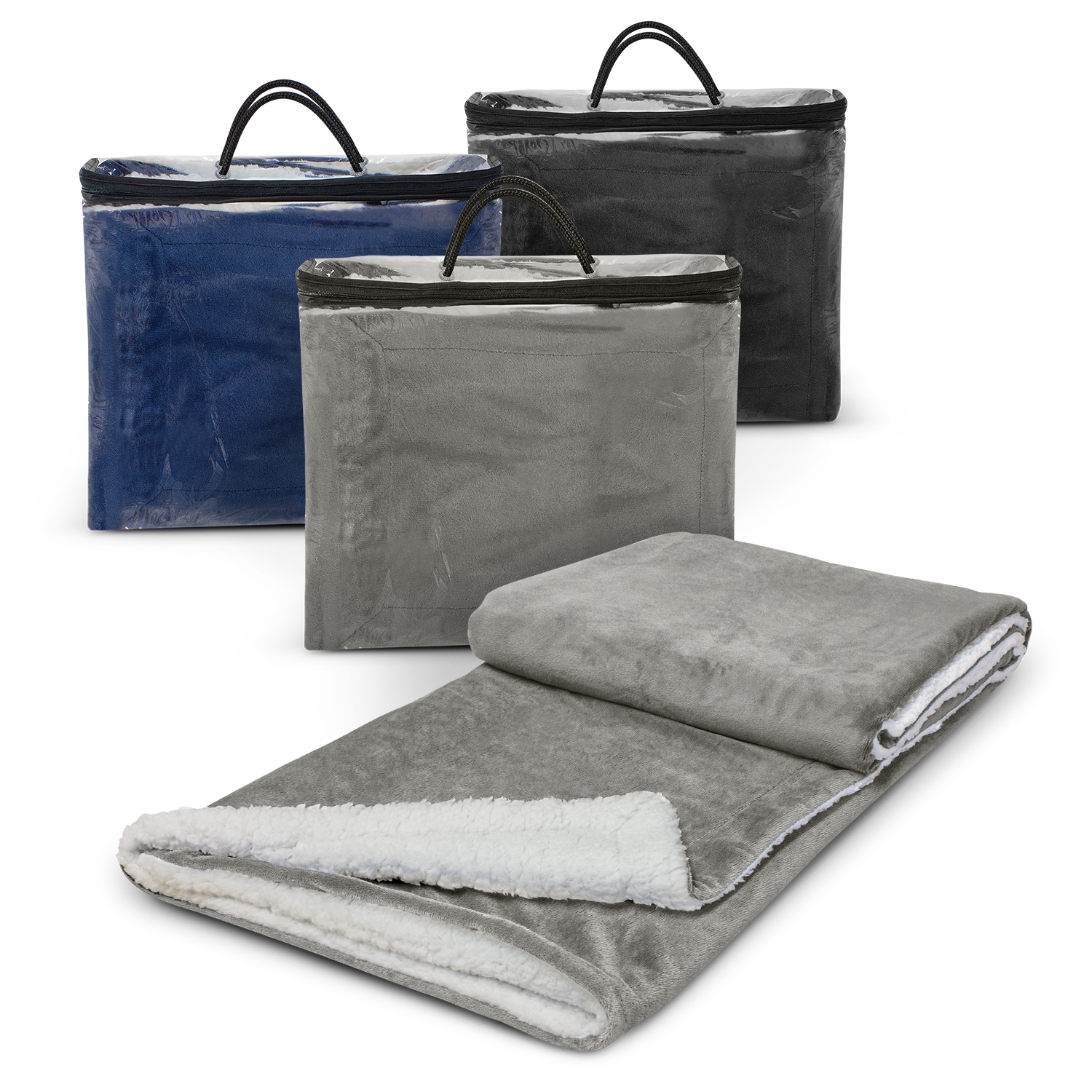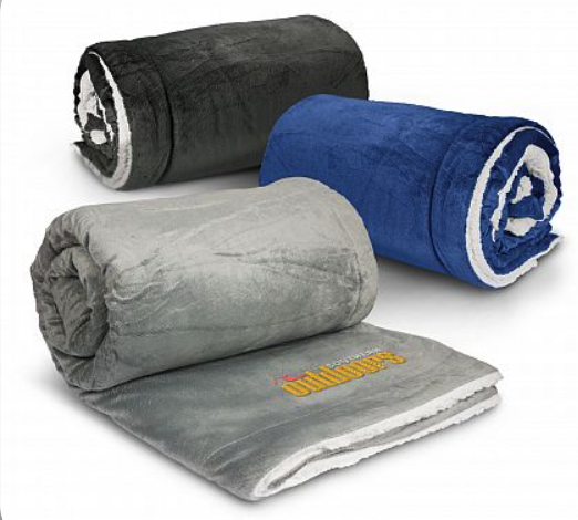 Luxurious 1524mm x 1270mm soft fleecy blanket which is ideal for use at home or at any outdoor event. It is manufactured from 240gsm Shu Velveteen fleece with a 190gsm poly-velvet liner. It is beautifully presented in a reusable clear carry bag with a zippered closure.