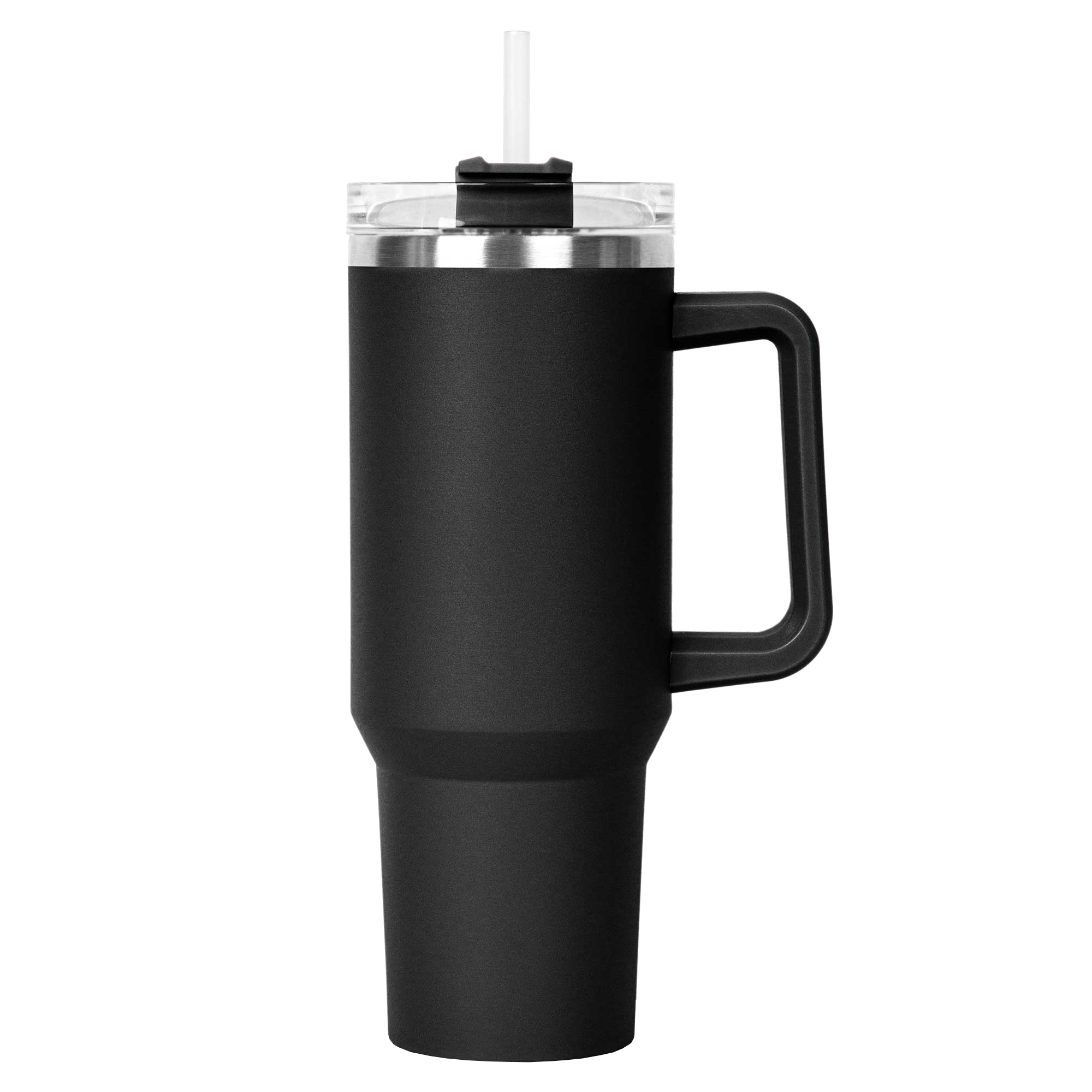The generous capacity of 890ml stainless steel double walled Oxford Mug is capable of holding ample liquids that are both hot and cold at the same temperature. Screw on clear plastic lid has a twist turning closure. Double walled vacuum insulation with a handy sturdy plastic carry handle and plastic attached straw for easy sipping on the go. Fits into most car cup holders. BPA free and handwashing is recommended.