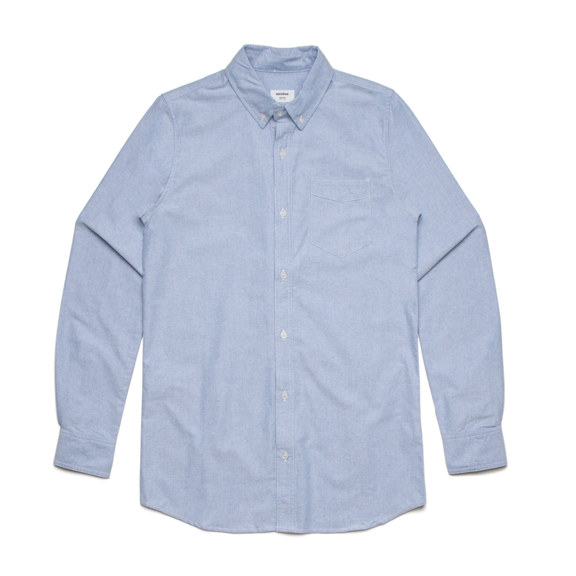 Regular fit, long sleeve button up shirt, button-down collar, chest pocket, clear buttons, adjustable cuffs, mid weight, 160 GSM, 100% woven cotton, side seamed, back yoke, preshrunk to minimise shrinkage