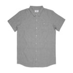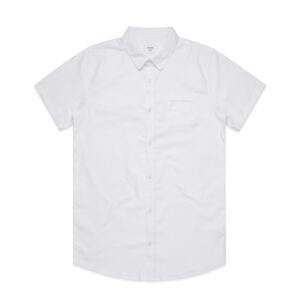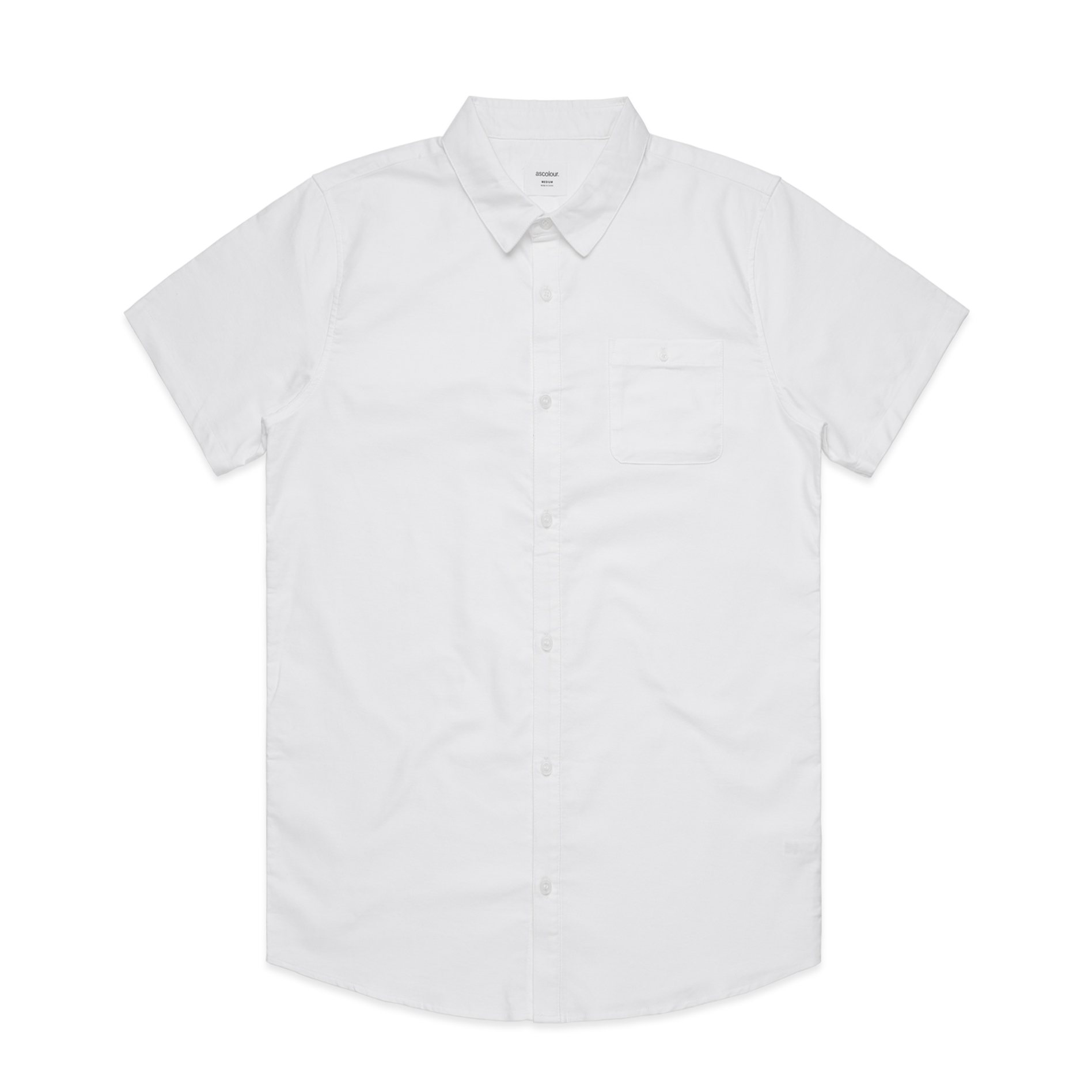 Regular fit, short sleeve button up shirt, button close chest pocket, clear buttons, mid weight, 145 GSM, 100% woven cotton, side seamed, back yoke, preshrunk to minimise shrinkage