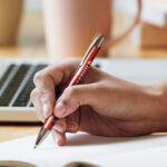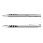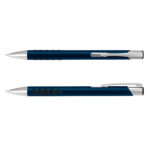 Retractable aluminium ballpoint pen with a matte anodised coloured barrel, shiny chrome accents and a black silicone grip with matching end cap. It has a large volume refill with 1200 metres of black German manufactured Dokumental ink. Panama can be presented in an optional pen sleeve or a gift box.