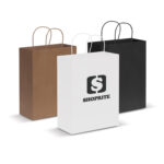 Large carry bag made from tough 160gsm paper. The Natural and Black colours are recycled paper. . Decoration options: Screen Print