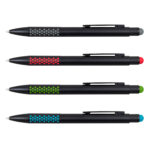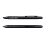 Functional pen and stylus in one. It is a retractable aluminium ballpoint pen with a stylus tip with 1200 meters of blue German-manufactured Dokumental ink. The pen features a lacquered matt black barrel with a unique PU frosted coloured grip for comfortable writing.