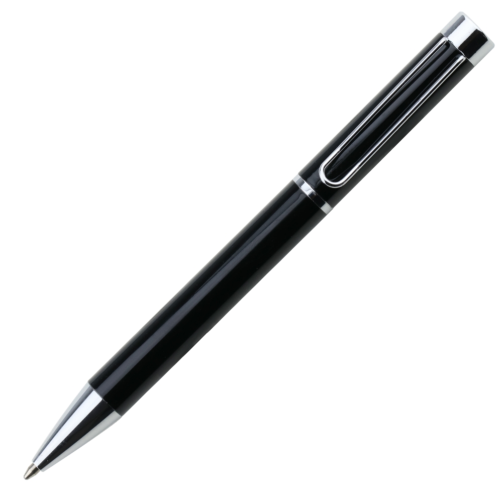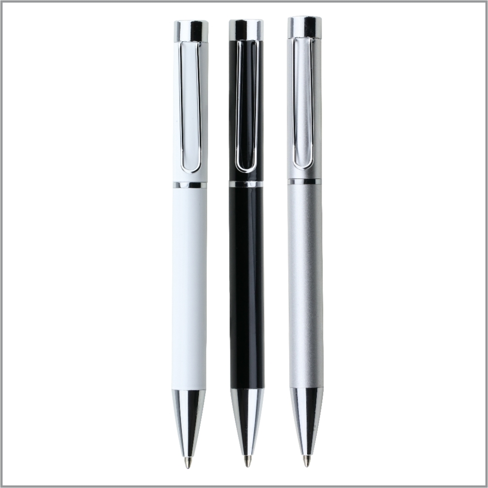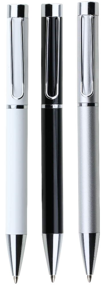 Click action. Brass pen with shiny chrome part. Barrel colour: Black, silver , white, German Documental black ink , TC nib 1.0mm, 1800m writing length, metal Parker style refill