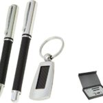 Pen Gift Set Ball Point And Roller Ball Pen With Matching Key Ring Carbon Fibre Gift Set