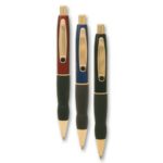 Push button metal pen with coloured barrel, black grip and finished with either gold or silver fittings. Parker style black refill.