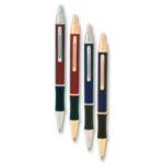 Classic slim line push button pen with convex black rubber grip. Available with either silver or gold trim and clip. Parker style black refill.