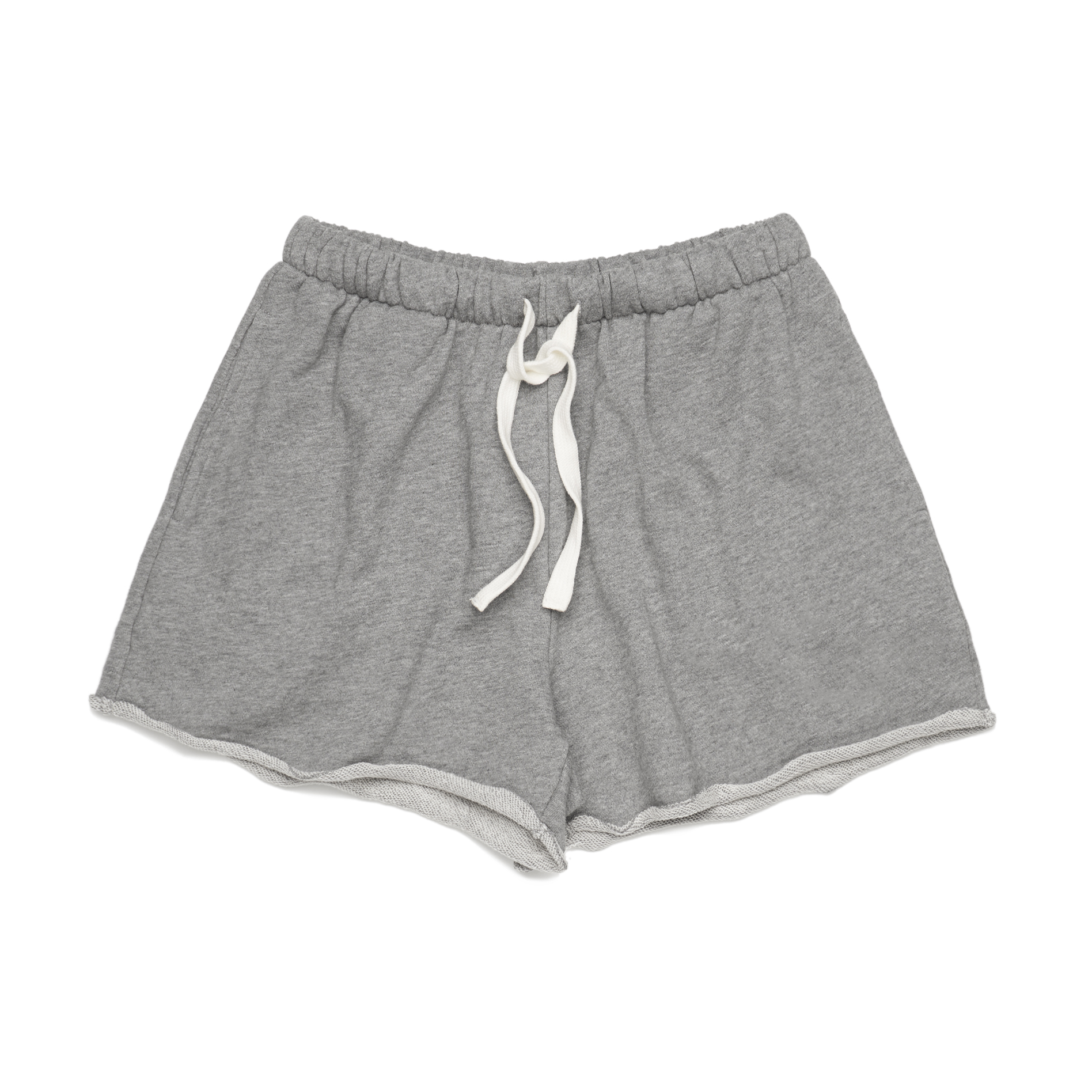 Women’s regular fit sweat shorts, 2 side pockets, raw edge hem. Mid weight, 320 GSM. 82% cotton 18% polyester anti-pill French Terry fleece Elastic waistband, white external drawcord, preshrunk to minimise shrinkage